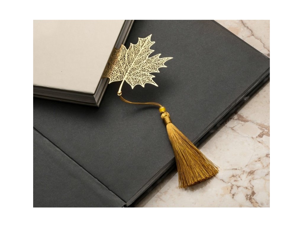 Jellegzetes arany könyvjelző levél formájú bojttal és aranygyöngyökkel. A könyvjelző tökéletes és tartalmas ajándék minden könyvkedvelő számára! A juharlevelet az egység, a tolerancia és a béke szimbólumaként ismerik el. A juharlevél könyvjelző tökéletes ajándék, hogy gazdagítsa az olvasást és felvidítsa valaki napját, bármilyen alkalomról is legyen szó!