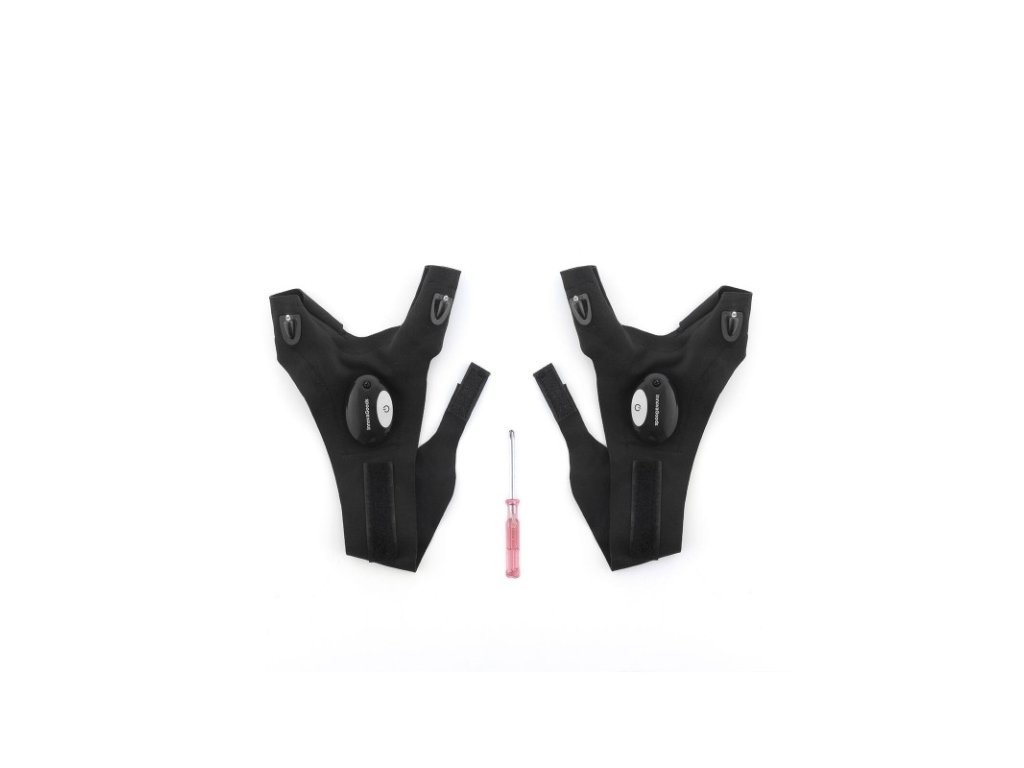 - A készlet 2 db kesztyűt, 2 db gombelemet és 1 db csavarhúzót tartalmaz, hogy az elemek lemerülése esetén könnyen cserélhetőek legyenek. Ezeket a kétujjas kesztyűket a hüvelyk- és mutatóujj behelyezésével könnyű felvenni, és tépőzárral rögzíteni a csuklón.