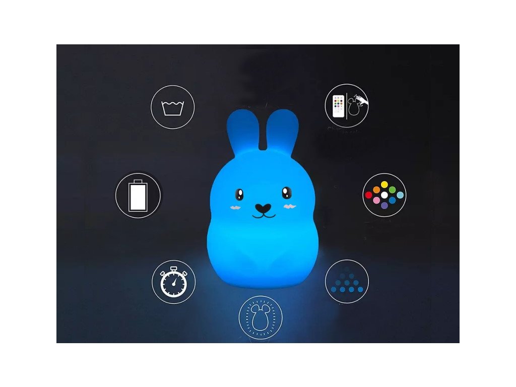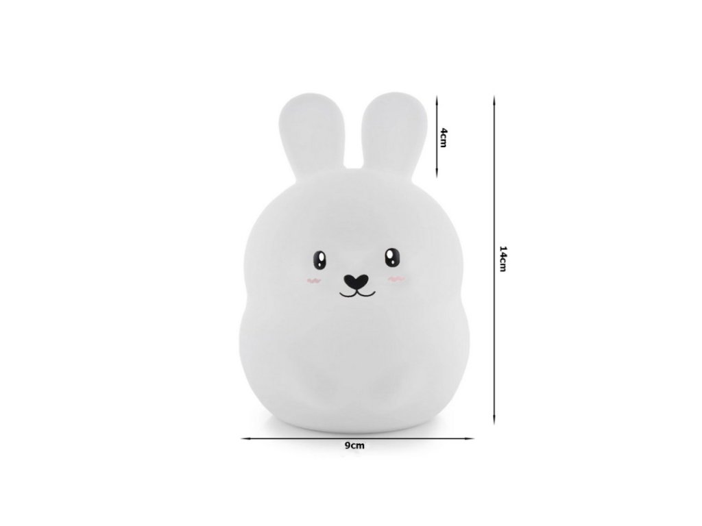 Ez a gyereklámpa nagyon praktikus és aranyos, kellemessé varázsolja az estét és jó alvást biztosít. Kétségtelenül hasznos lesz minden olyan gyermek számára, aki érdeklődik az állatok iránt, valamint azoknak, akik félnek a sötéttől. A gyengéd színek, a csinos szemek és az aranyos arckifejezés esztétikai értéket és varázst adnak a nyuszinak. A lámpa tartós szilikonból készült, ami kihat a stabilitásra és garantálja a termék hosszú élettartamát. A lámpa erős LED fényt bocsát ki, amely hatékonyan világítja meg a sötétséget és eloszlatja a gyerekek félelmeit. Az USB kábelen keresztüli tápellátás nagyon kényelmes megoldás. Ennek köszönhetően a lámpa töltés után bárhová magával vihető anélkül, hogy áramforráshoz kellene csatlakoztatni. Praktikus lámpával a gyerek megvilágíthatja az utat, pl. a wc-re is. A termék lekerekített formájú, sima élekkel rendelkezik, és biztonságos a használata. A lámpa könnyű és kicsi, ami megkönnyíti a tárolását és a szállítását. Nem melegszik fel, így nem égeti meg a gyerekek kezét.