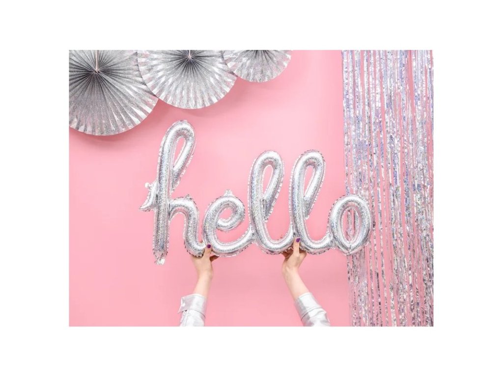 Holografikus léggömb - "Hello" - ezüst 72x45cm