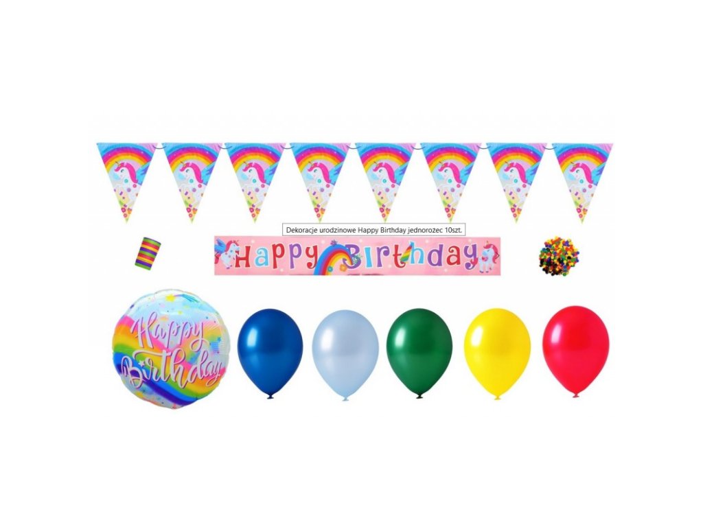 Az unikornis az elmúlt évek egyik legnépszerűbb dekorációs motívuma. Tehát ha gyermeke szereti ezt a varázslatos lényt, szervezhet születésnapi partit ezzel a témával. A könnyen felszerelhető lenyűgöző dekoráció varázslatos hangulatú mesevilágot varázsolt minden helyiségből. A készlet kétségtelenül varázslatot ad minden bulinak, aminek köszönhetően az ünneplésről készült fotók szokatlan hangulatúak lesznek, és csodálatos emlékek maradnak számodra ezen a fontos napon.