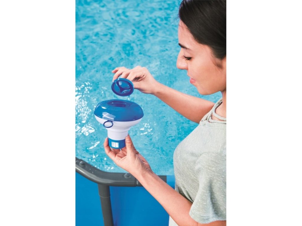 Kerti medencéje felszerelésének szerves részét képezi egy úszó medence kémiai és egyéb termékek adagolójával. Feladata a tartályban lévő víz tisztítása, hogy Ön élvezhesse a medence tisztaságát. Miért érdemes egy kis adagoló vásárlása mellett dönteni, amely segít a medence tisztításában? A szoros medencetakaróval kombinálva kristálytiszta vizet biztosít, biztonságos úszáshoz és vízben való játékhoz gyermekek és felnőttek számára. Hogyan működik egy ilyen adagoló? A tabletta behelyezéséhez óvatosan fordítsa el a felső fedelet balra, és távolítsa el, majd csúsztassa ki a tartály alját, és helyezze be a vegyszereket. Ezután tegye vissza a fedelet, és fordítsa el az óramutató járásával megegyező irányba a tartály bezárásához. Miután behelyezte a bróm- vagy klórtablettát, a tartály a medencében lebeg, és lassan feloldja a tablettát.