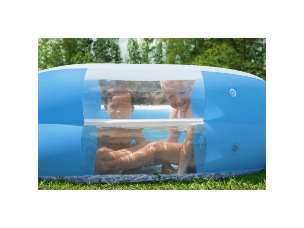 Az eredeti gyermekmedence átlátszó résszel minden kert szenzációs kiegészítője. A medence két különálló légkamrából áll, eredeti formában, védve a levegő kijutása ellen. Ideális az első vízzel való érintkezéshez, és még akkor is elég nagy lesz, ha a gyerekek felnőnek. Építse kapcsolatát a vízzel és a vízi környezettel ezzel a gyönyörű medencével.