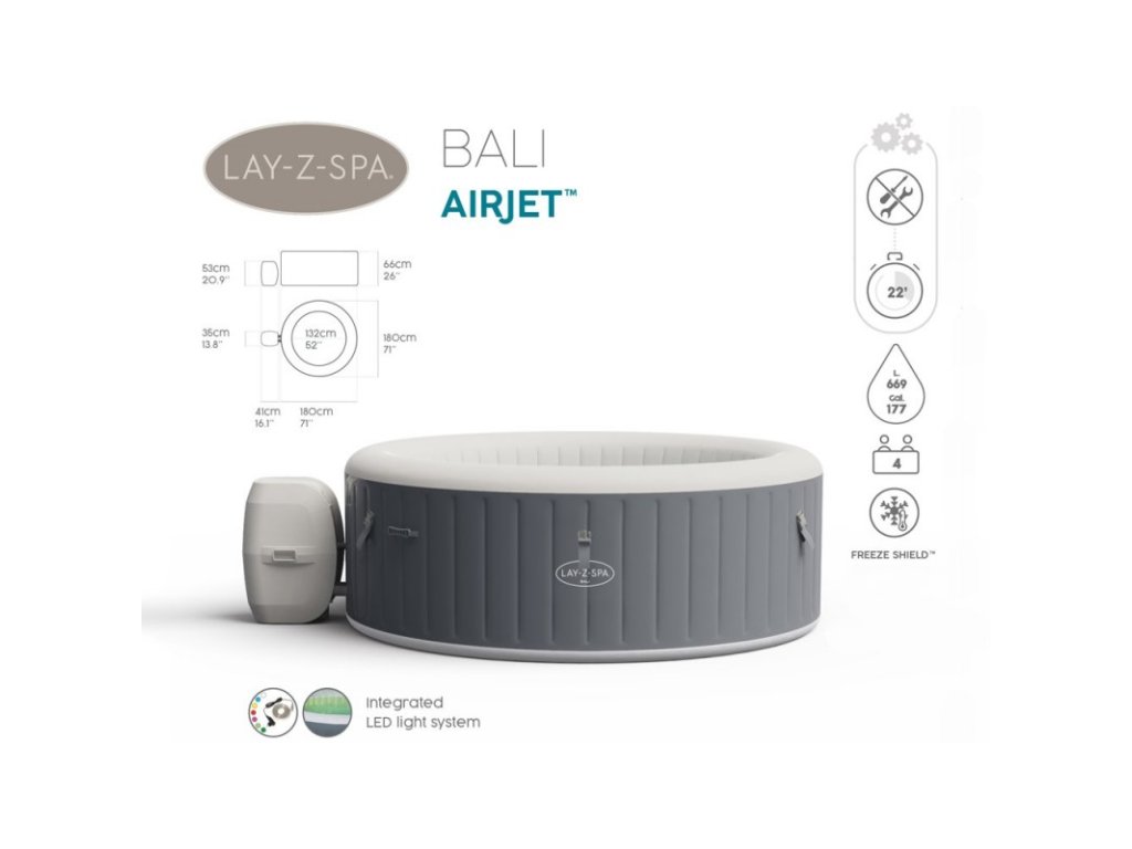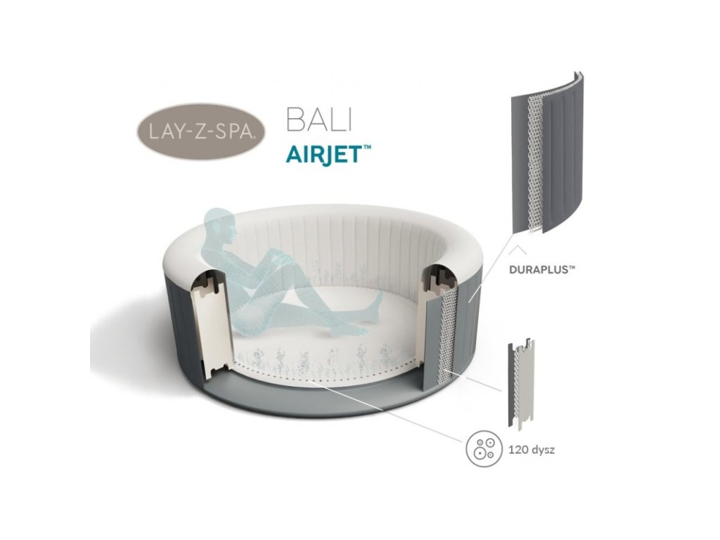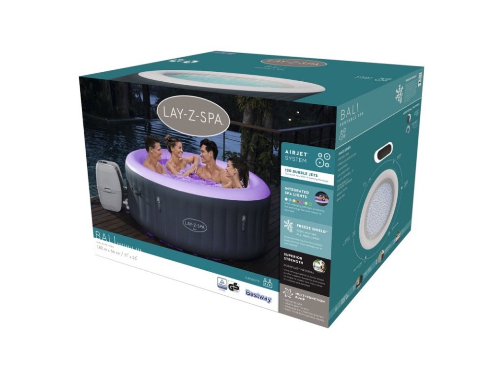A Lay-Z-Spa® Bali AirJet™ Bestway egy kényelmes, felfújható pezsgőfürdő, amelyet az otthoni kellemes pihenéshez terveztek.