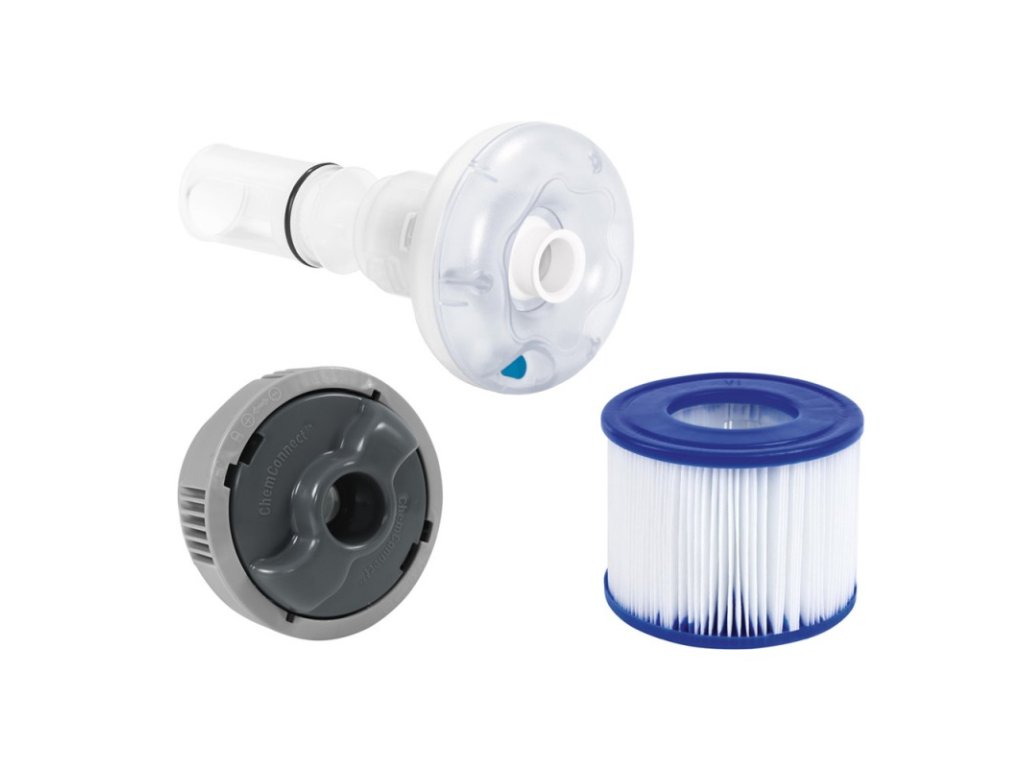 A mellékelt ChemConnect™ adagoló a klór egyenletes eloszlatásával tisztán és egészségesen tartja a vizet.