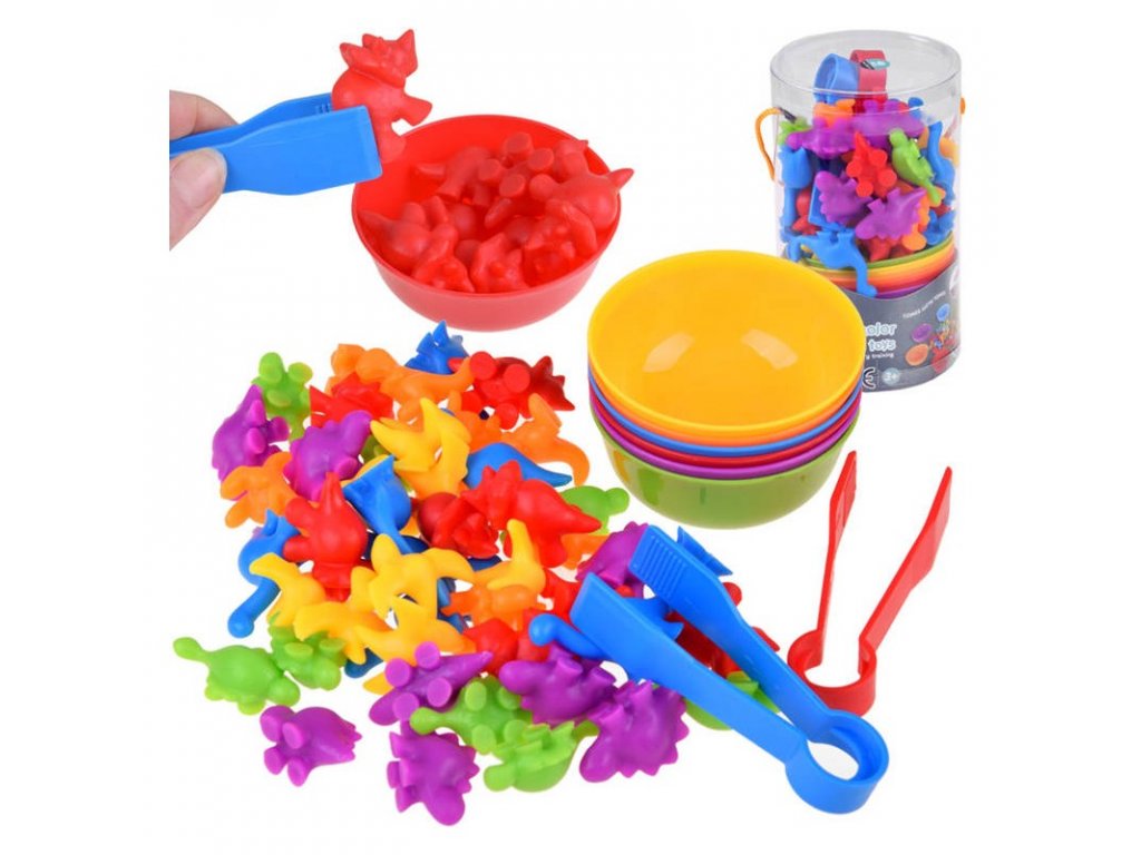 - A dinoszauruszfigurák készlete nagyszerű módja annak, hogy megtanulj számolni és megkülönböztetni a színeket.