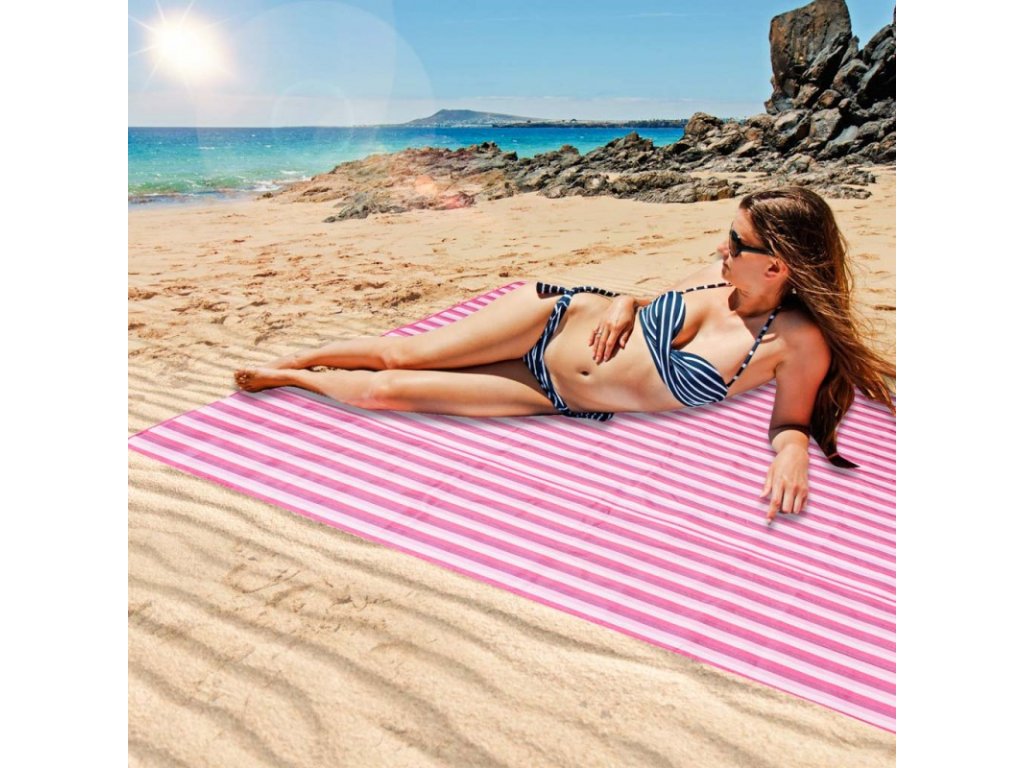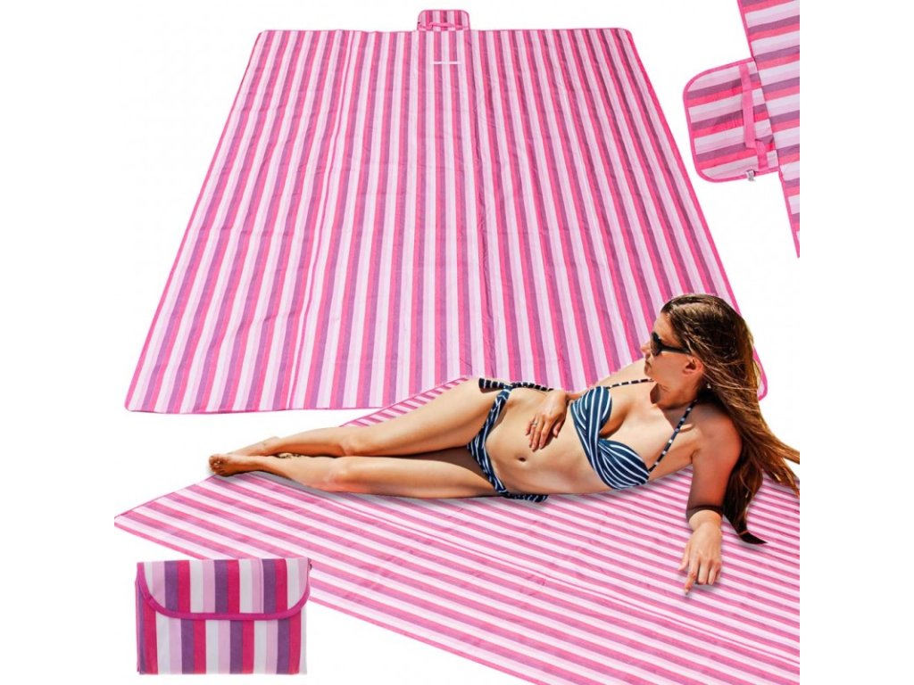 Családi nyaralás a tengerparton vagy kirándulás barátokkal egy pillanatnyi pihenésre a természetben? Szükséged lesz egy nagy szőnyegre, hogy mindenki kényelmesen ülhessen! A nagy méretek lehetővé teszik társasjátékozást, piknikkosárból való finomságokat, vagy egyszerűen csak feküdni a napon. A választás egyedül a tiéd! Nagy előnye a színes minta és az élénk színek, amelyeket a strandon már messziről felismerhetsz, így többé nem kell attól tartanod, hogy a strandbüféből hazatérve nem találod a szőnyeget. A szőnyeg felső része kellemes anyagból készült, mely kíméletes lesz a bőrhöz a nyári pihenőidőben, a szőnyeg alsó oldalán lévő vízálló réteg pedig gondoskodik arról, hogy a szőnyeg ne ázzon meg még akkor sem, ha nedves homokra, ill. fű. Használaton kívül a szőnyeg kényelmesen téglalappá összehajtható, aminek köszönhetően a termék nem foglal sok helyet. A praktikus, beépített fogantyú biztosítja a takaró kényelmes szállítását az autóból a strandra. Az anyagok magas minősége rendkívül strapabíróvá teszi a terméket, ami garantálja a hosszú használatot sok tengerparti kirándulás során.