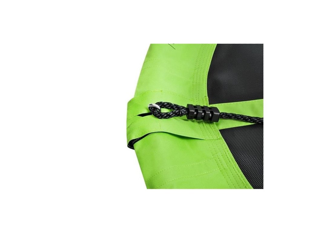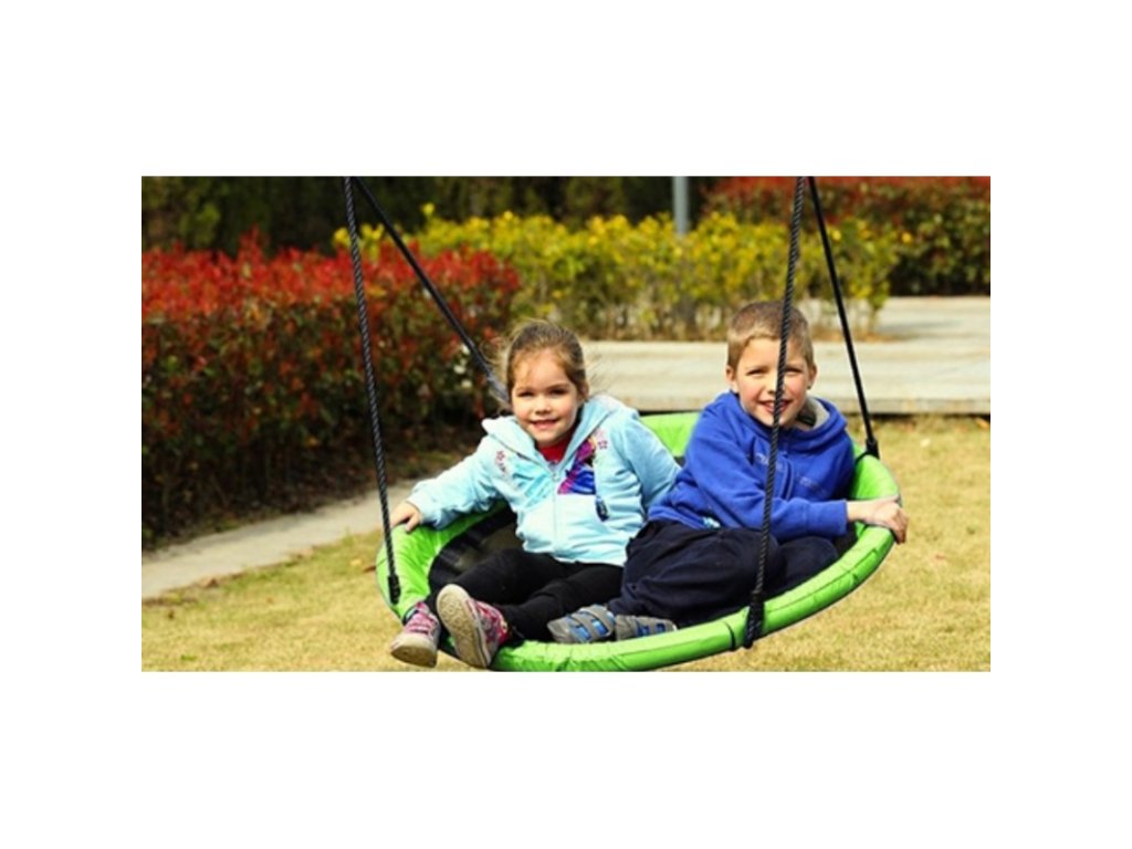 A hintának EPE habbal védett acélvázból készült széles, kerek ülőfelülete van, melyben tömör PP háló található. Oxford 600D anyagból készült, ami garantálja a biztonságos szórakozást. Ez garantálja a biztonságot és a felnőttek számára is biztosít egy pillanatnyi örömet. Ideális nagy család számára. A hinta könnyen és gyorsan felszerelhető. A kötél hossza állítható, maximális hossza 180 cm. Így a hinta ideális kisgyermekek (magasságcsökkentés) és nagyobb gyermekek számára. Ez megkönnyíti a biztonságos be- és leszállást.