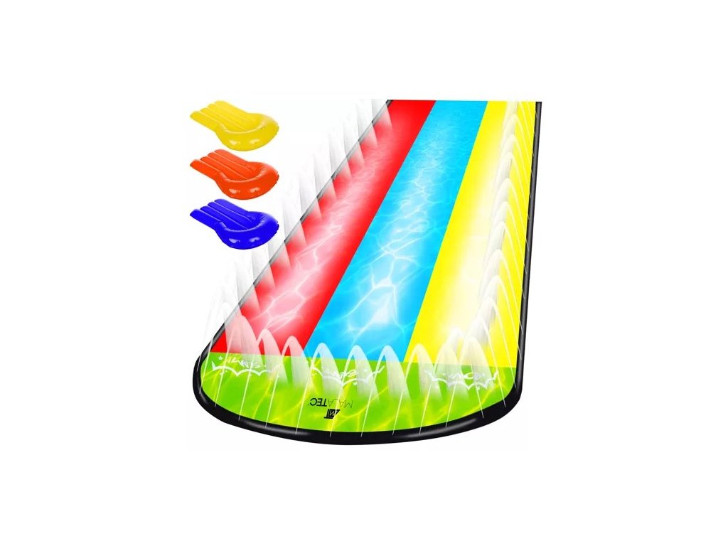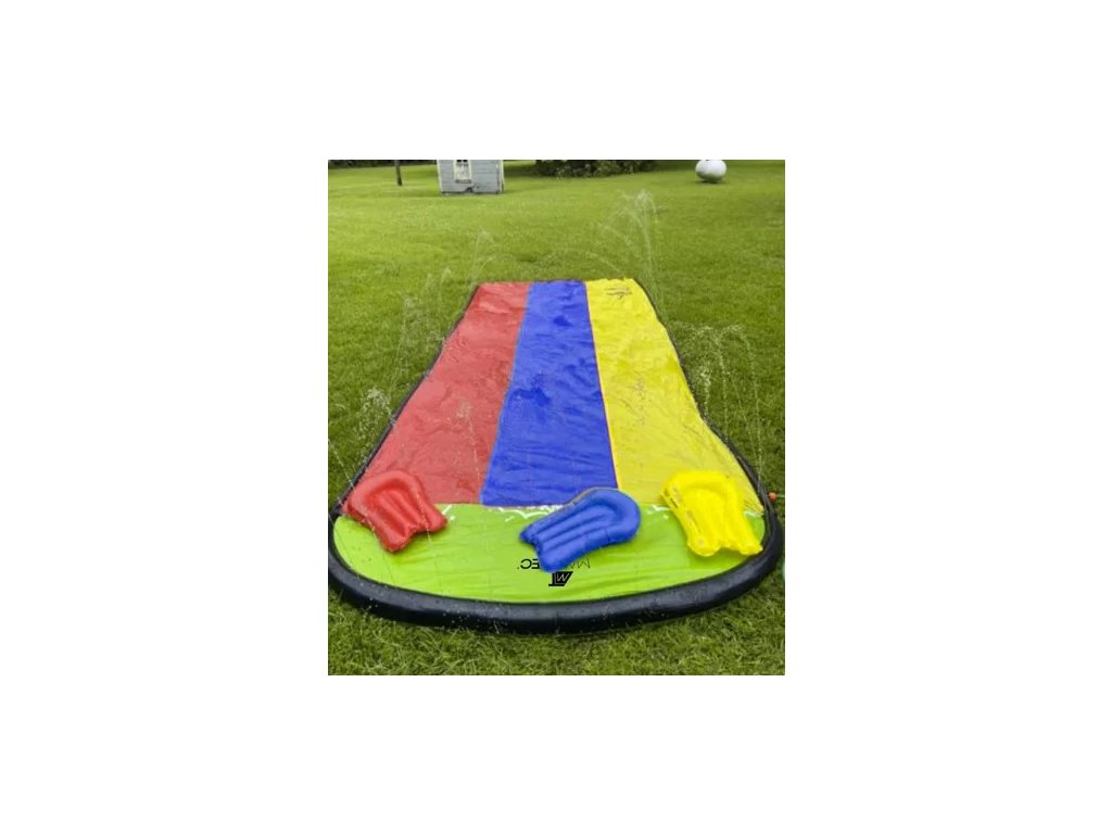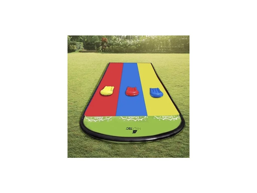TRIPLE WATER SIDE - felfújható deszkákkal kombinálva a nyári szabadtéri játékok határozott kedvence. A csúszdának három pályája van, melynek hossza akár 4 méter. A csúszda öntözött. A csúszdában elhelyezett csatlakozókra egy kerti tömlő csatlakoztatása után a csúszda széleit feltöltik és vízzel permetezik, ami biztosítja a sima csúszást túlzott súrlódás nélkül.