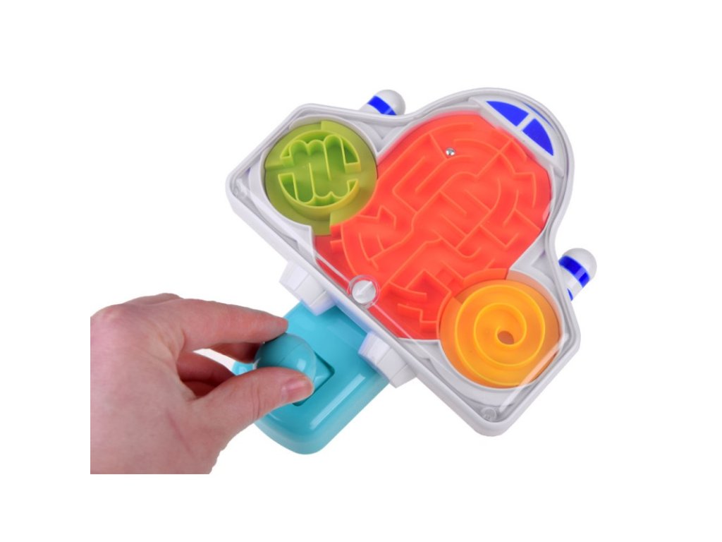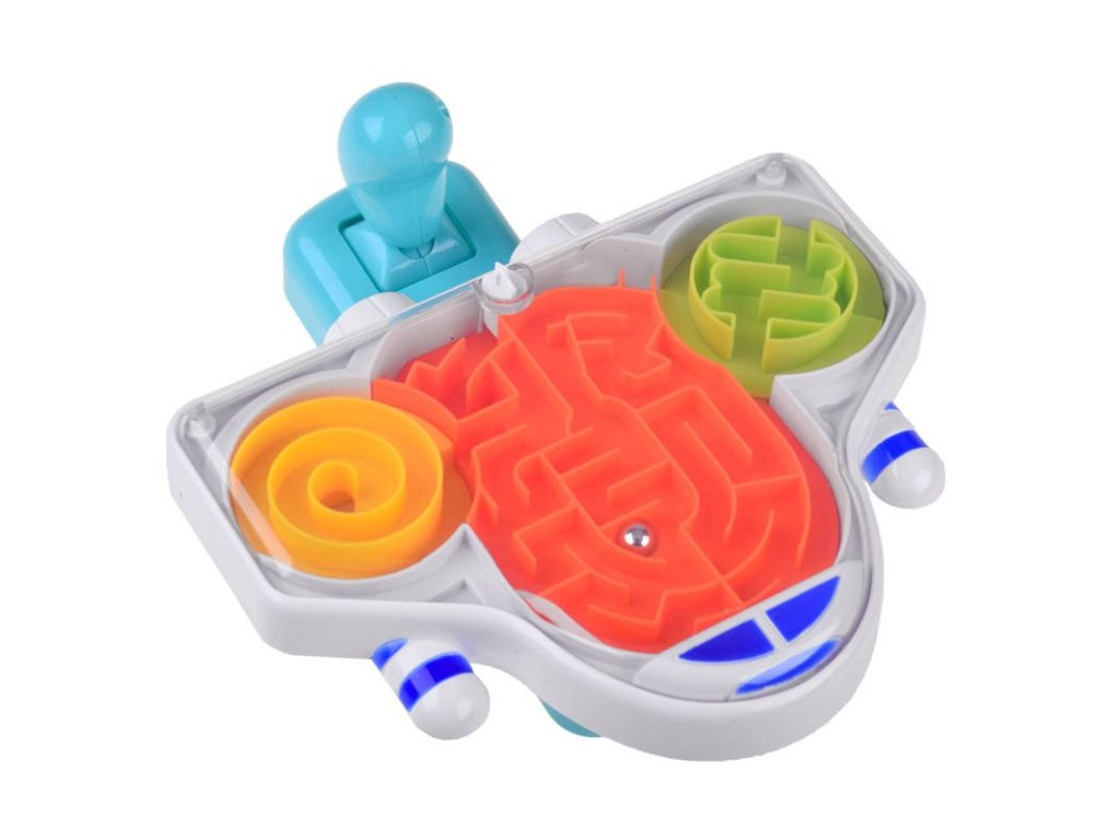 Az űrrakétába zárt labirintus minden kis űrhajós számára vonzó lesz. A játékban van egy joystick a labda irányításához. Egy űrhajóba zárt fémgolyónak az a feladata, hogy a zöld mezőből a narancssárgán át leküzdje a labirintust, hogy átjusson a labirintuson a sárga zónába, majd vissza. Okos játék, amely lehetővé teszi a koncentráció, a kézügyesség és a türelem gyakorlását. A készlet teljes egészében műanyagból készült, élénk színekben, amelyek játékra motiválnak.