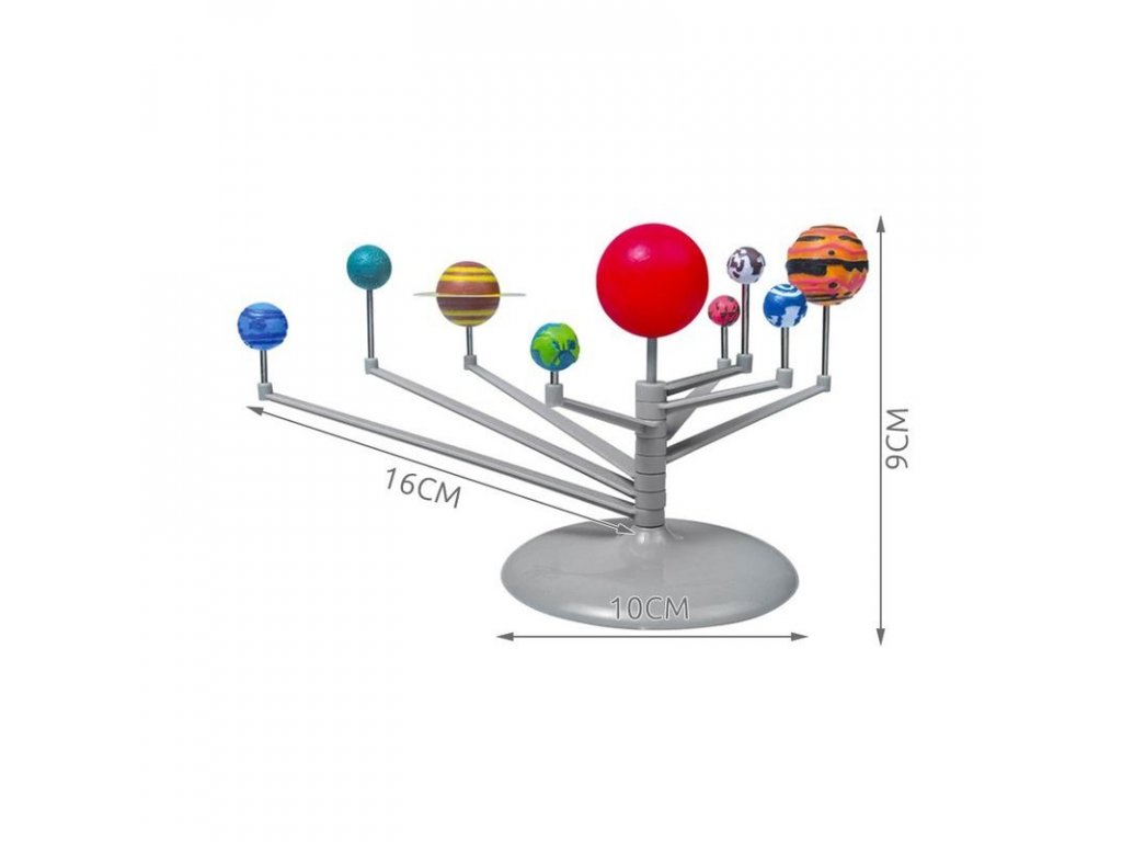 A játék a világra és a világűrre kíváncsi fiatal felfedezők számára készült. A készlet tartalma: napelemes rendszer (festéshez), festékek, ecsetek, állvány és szerelőkészlet. Kis türelemmel és kitartással elkészül a napelemrendszer egy csodálatos modellje, mely a gyerekszoba egyedi dísze lesz.