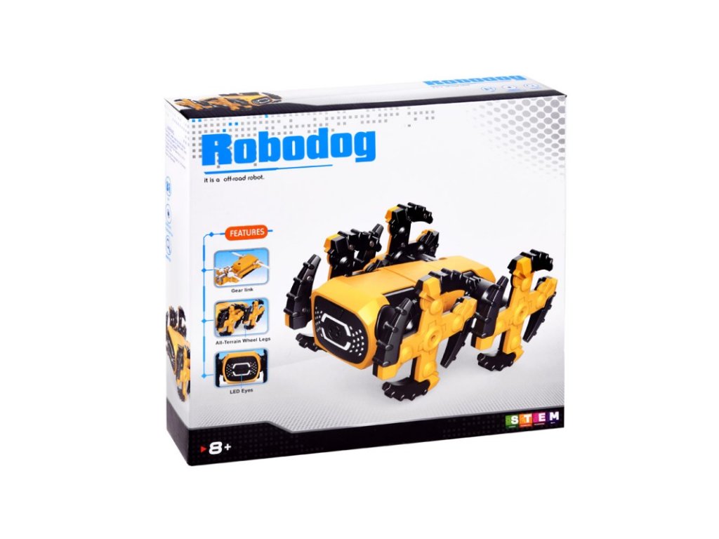A Robodog a STEM modellnek megfelelő játék, amely a gyermek kognitív képességeinek, önálló gondolkodásának serkentését helyezi előtérbe, következtetések levonására és az ok-okozati gondolkodás képességére tanít. A STEM célja, hogy fejlessze a gyermekek azon képességét, hogy minden elérhető érzékszervével felfedezzék a világot. A robotika az egyik leggyorsabban fejlődő mérnöki ág. Ennek a játéknak köszönhetően a gyermekből mérnök válhat, és igazi sétálórobotot építhet. Ez a fantasztikus játék felkelti a gyermek érdeklődését a robotika világában, és igazi szenvedély kezdete lehet. A meghajtó alkatrészek fémből és műanyagból, míg a ház kiváló minőségű, tartós műanyagból készülnek. A szokatlan kerekeknek köszönhetően a játék úgy néz ki, mint egy igazi robot egy sci-fi filmből. A robotkutya építése nagy odafigyelést és türelmet igényel. A gyerek egyébként elsajátíthatja a műszaki rajzok olvasásának képességét, ami meghatározhatja jövőbeli irányát.