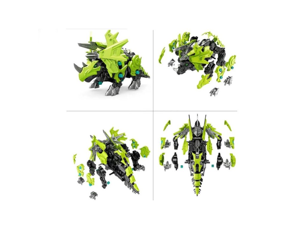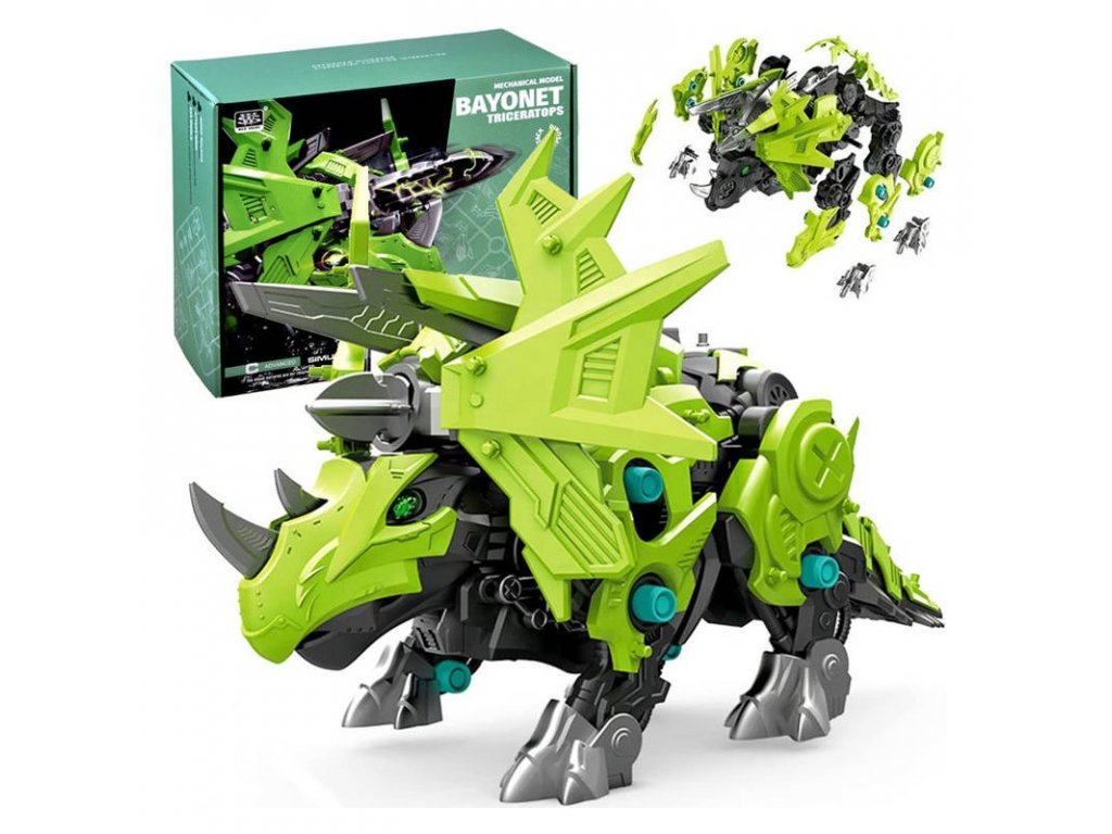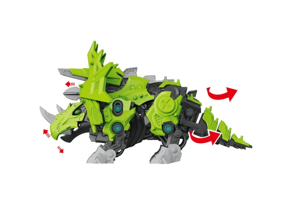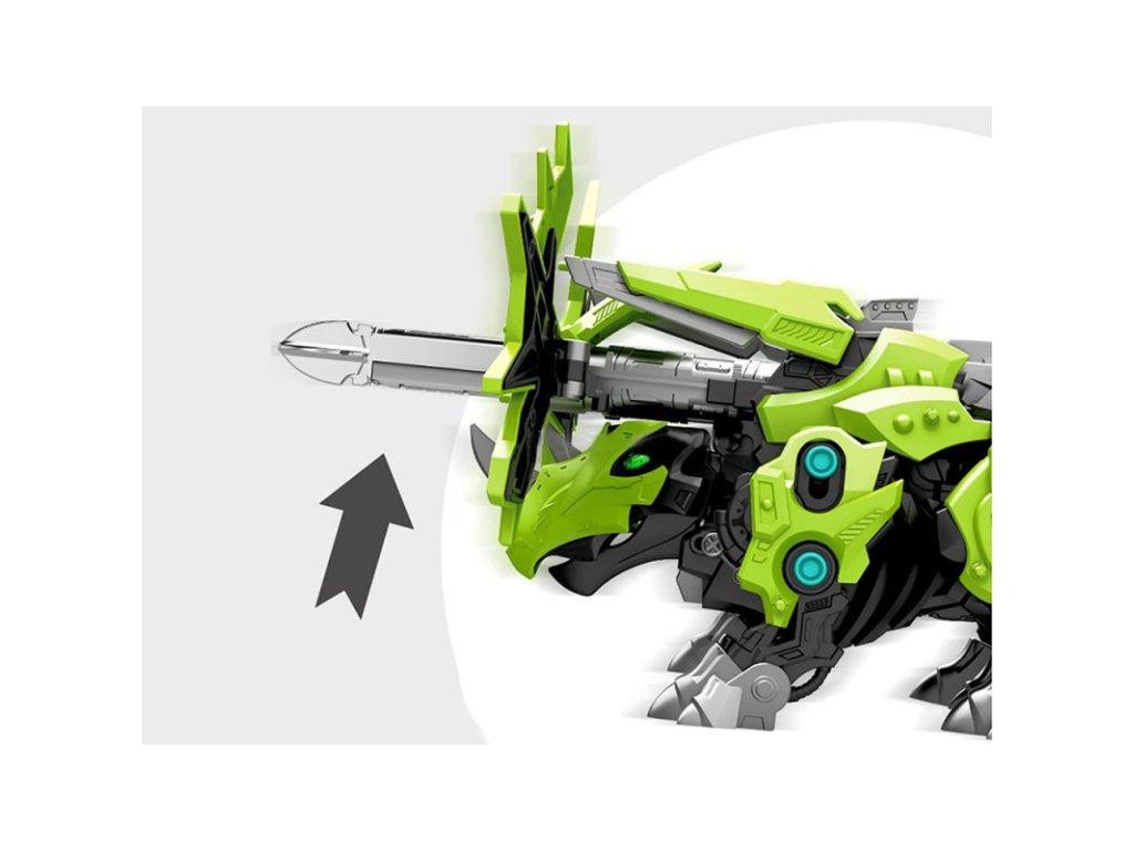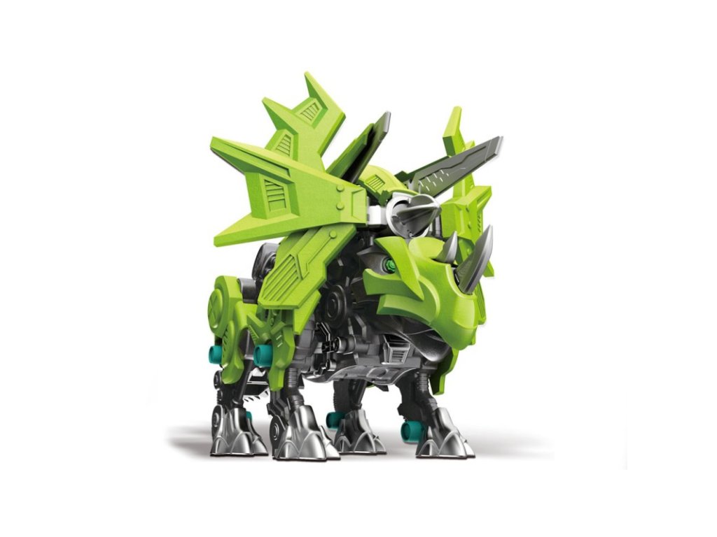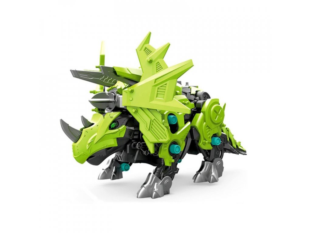 A Triceratops az egyik leghíresebb dinoszaurusz. Ez a növényevő nem volt teljesen védtelen, szarvai nagyon bánthatták a támadót. A dinoszauruszok az egyik leglenyűgözőbb lények, amelyek valaha éltek a Földön. Ezért elismerésre találtak a gyerekek szemében szerte a világon. Ennek a készletnek köszönhetően a gyermekből mérnök lehet, és megépítheti saját bionikus triceratopjait. A móka azonban nem ér véget a makett elrendezésével, hiszen a készlet tartalmaz egy mechanizmust, amely a dinoszaurusz mozgatásáért felelős. A modell rendezéséhez szükséges összes elem kiváló minőségű műanyagból készült, intenzív színekben. Az elemek ragasztást nem igényelnek, elég helyesen összeilleszteni őket, hogy illeszkedjenek egymáshoz. A modellek elrendezése pozitív hatással van a koncentrációra, a térbeli képzelőerőre és a kézügyességre. Összeszerelés után robotdinoszauruszunk sétál és megtámadhatja az ellenfelet. A játék a gyerekszoba polcon is remekül mutat majd.