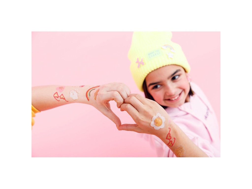 Az imádnivaló tetoválókészlet gyerekeknek egy aranyos kiegészítő, amely minden kis hercegnőt magával ragad! Szeretnéd kislányod kedvében járni egy eredeti kiegészítővel, ideiglenes tetoválások formájában, sok-sok aranyos mintával? Ezek a divatos mintájú ideiglenes tetoválások nemcsak tökéletes dekorációt jelentenek, hanem nagyszerű módja annak, hogy felfedje a tetoválások iránti szeretetét mindenki előtt. A készlet használható ajándékként vagy szórakoztató programként a vendégek gyermekei számára egy családi rendezvény alkalmával.