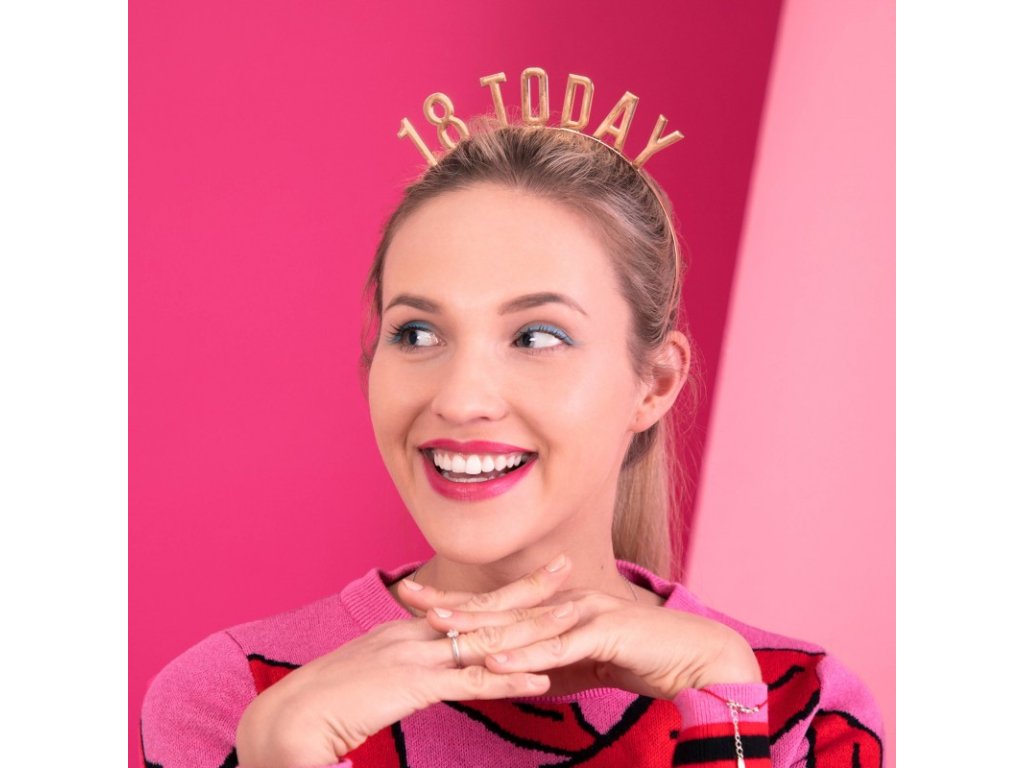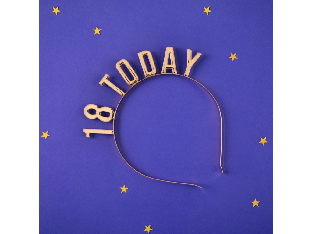 Fedezze fel az eleganciát és az ünnepi csillogást az arany "18 TODAY" fejpánttal, amely minden nagykorú ünneplés kötelező kelléke.