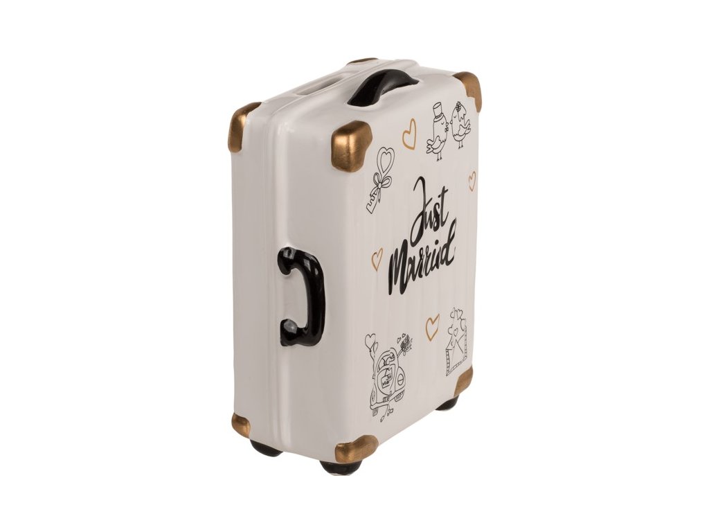 Készüljön fel egy felejthetetlen nászútra az esküvői persellyel – Just Married! Ezt az elegáns és stílusos perselyt minden részletet szem előtt tartva alkották meg, hogy segítsen megőrizni az esküvő napjának legértékesebb emlékeit, és pénzt gyűjtsön a tökéletes nászútra. Esküvői persely-bőrönd kerekeken - A Just Married nemcsak praktikus hely pénzügyek és násznép ajándékainak tárolására, hanem egy új fejezet kezdetének szimbóluma is az életében. Első osztályú anyagokból készült, amelyek garantálják a tartósságot és az eleganciát. Ez a stílusos bőrönd friss és romantikus dizájnnal tökéletes társ nászútjához, és romantikus és kalandos légkört teremt. Esküvői persely-bőrönd kerekeken - A Just Married fiatal házasoknak is remek ajándék. Segít megörökíteni a nagy nap értékes emlékeit, és helyet biztosít a megosztott megtakarítások tárolására. A szerelem szimbóluma, és egy új, közös utazás kezdete. Csatlakozzon a sok párhoz, akik értékes emlékeiket őrzik ebben a stílusos perselyben. Engedje, hogy ez a persely felszívja mindkettőtöket, és együtt utazzanak a szerelem és az öröm világába. Esküvői persely bőrönd – A Just Married segít megőrizni és megosztani közös álmait és az utazás szeretetét. Kezdjetek együtt egy új, izgalmas életet!