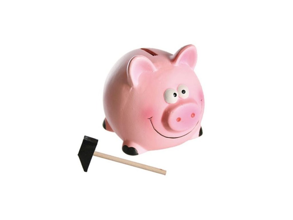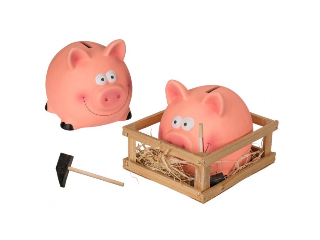 Ez a vicces malacpersely nagyszerű módja annak, hogy pénzt takaríts meg, mert ha egyszer ránézel, nem lesz szíved összetörni. A kerámia persely egy kis karámban van, kalapáccsal, amelyet akkor használhat, amikor eljött a megtakarítások kivonása.