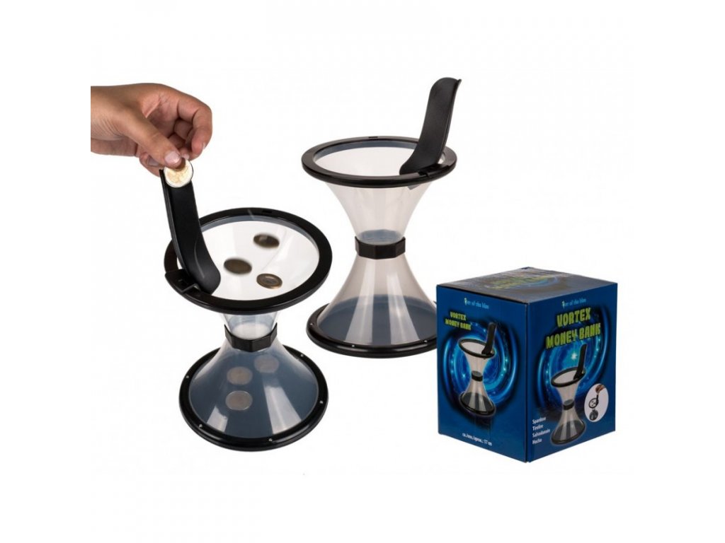 Ezzel a szokatlan készpénzes dobozzal nagyon szórakoztató a megtakarítás, az érmék többször is forognak, mielőtt a titokzatos tornádó átlátszó méjségébe esnének. Ez az eredeti pénztárca arra ösztönzi a gyerekeket, hogy megtakarításokat gyűjtsenek, miközben jutalmuk lesz, ahogyan a pénz a kasszába esik.