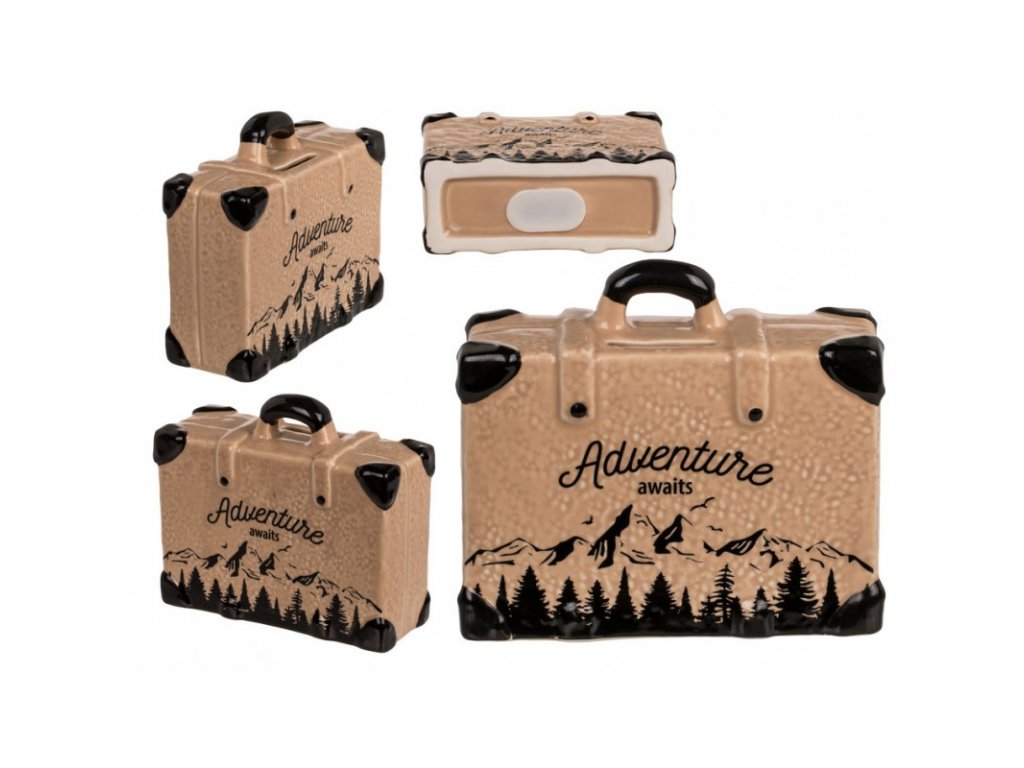 Valósítsa meg álmait, keressen kalandokat és utazzon stílusosan ezzel az utazóknak szánt persellyel - Adventure Awaits régi bőrönd dizájnjában vár! Ez a persely hűséges útitárssá válik, amely új helyek és felejthetetlen élmények felfedezésére inspirál. Bőrönd formájú perselyünk közvetlenül az Ön otthonába viszi a kalandvágyat. Kiváló minőségű anyagokból készült, amelyek biztosítják az ellenálló képességét és a tartósságát, így remek hely megtakarításai és utazási álmai tárolására. Minden egyes érmével, amit ebbe a pénzesdobozba tesz, közelebb kerül ahhoz a célhoz, hogy valóra váltsa legnagyobb utazási álmait. Legyen szó egzotikus tengerparti nyaralásról, kalandról a vadon élő természetvédelmi területeken vagy történelmi emlékek felfedezéséről, ez a persely utazásra és a világ felfedezésére ösztönöz. Egyedi dizájnjával és elbűvölő részleteivel ez a persely nagyszerű ajándék lesz az életed minden szenvedélyes utazójának. Legyen inspiráció szerettei számára, és bátorítsa őket saját kalandjaikra. Hagyja, hogy magával ragadja az új helyek, kultúrák és élmények utáni vágy. Perselyünk utazóknak - Adventure Awaits segít megőrizni és megvalósítani utazási álmait. Ne hagyd, hogy eltűnjenek, és adj esélyt az álmoknak, hogy valóra váljanak! Nyisd ki az ajtót a kalandokkal teli világ felé, és váltsd valóra utazási álmaidat még ma a persellyel - Adventure Awaits!