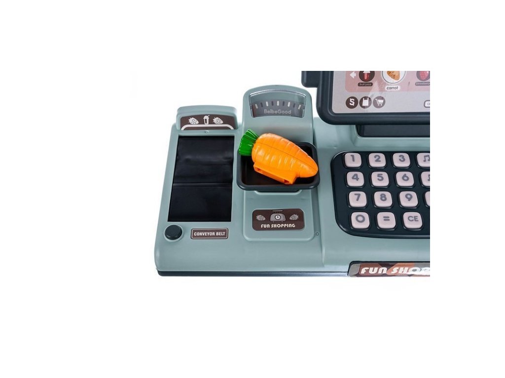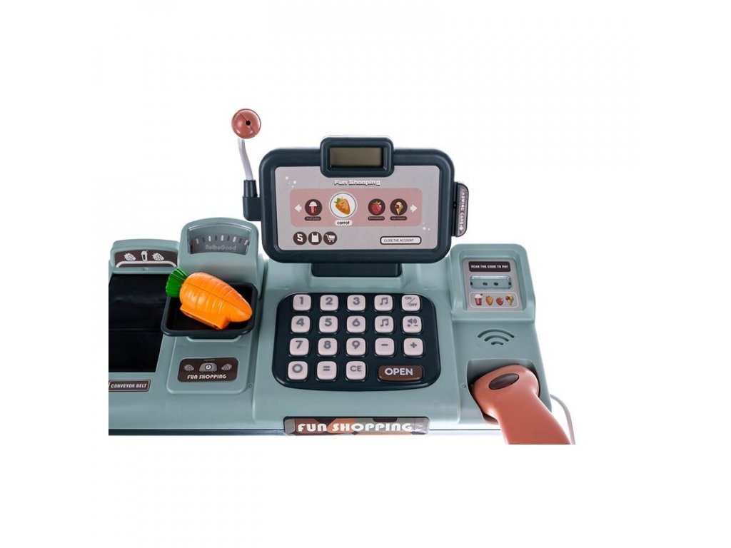 A vonalkóddal és hitelkártya-olvasóval ellátott gyerekpénztárgép ideális ajándék a játszani szerető gyerekeknek. Szerezzen gyermekének egy érdekes játékot, ami egy pénztárgép. A pénztárgép remek játék, amely nemcsak szórakoztat, hanem tanít is. Termék beolvasásakor pásztázási hang hallható, megjelenik a termék neve, az LCD-n pedig a termék ára. A gyermek a vásárlást bankkártyával vagy készpénzzel fizetheti. A pénztárgép ötvözi a szórakozást a tanulással, serkenti a gyermek fantáziáját, fejleszti kreatív gondolkodását, egyszerű műveleteket tanít számokkal.