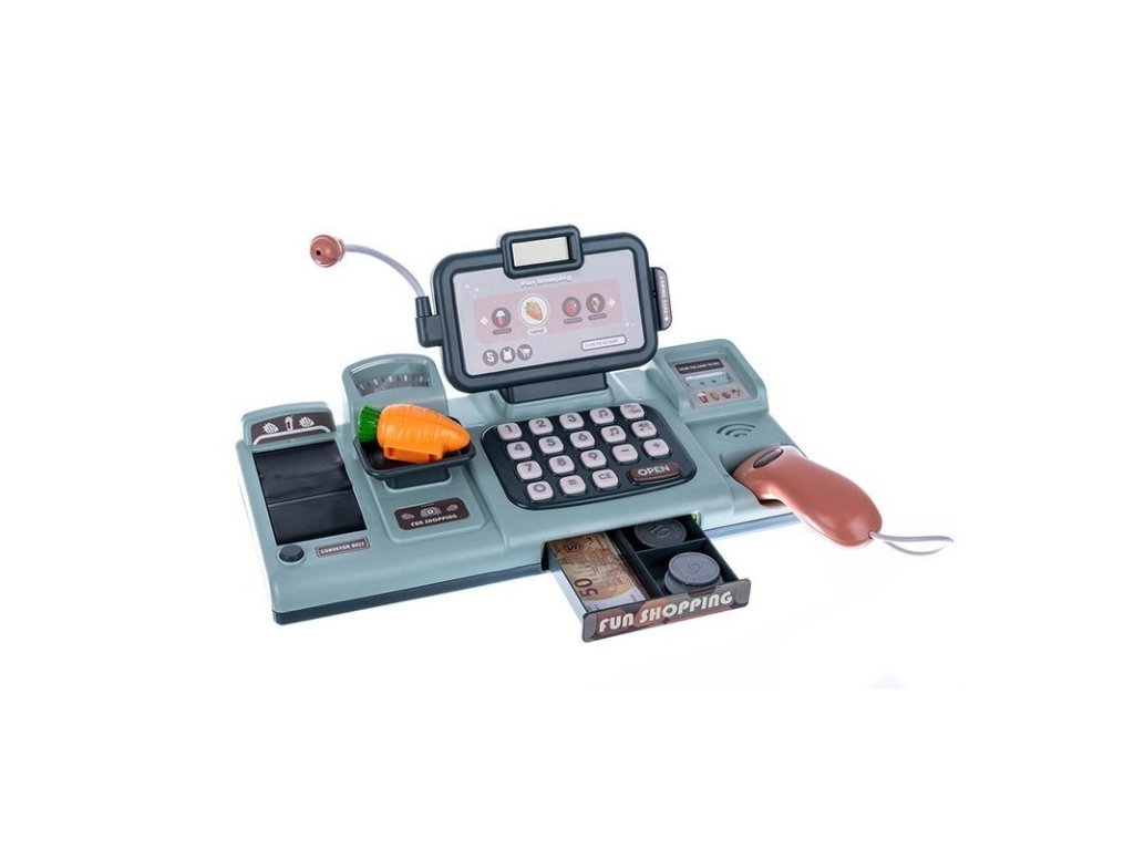 A vonalkóddal és hitelkártya-olvasóval ellátott gyerekpénztárgép ideális ajándék a játszani szerető gyerekeknek.