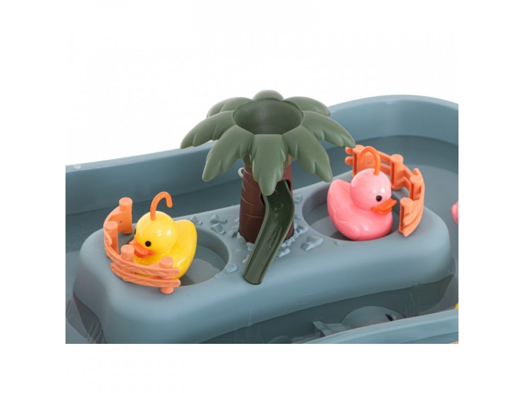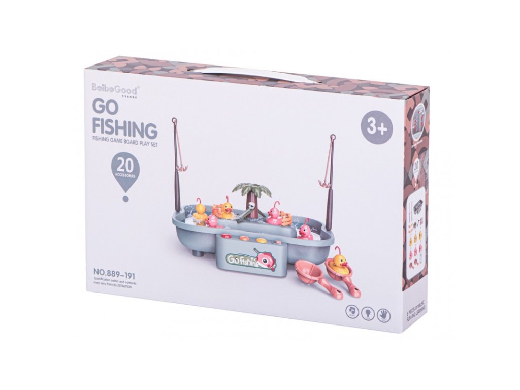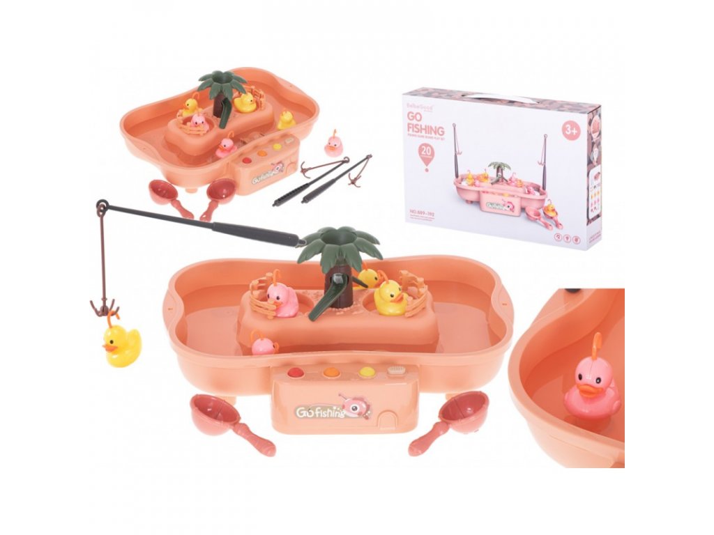 Rendkívül szórakoztató játék gyermeke motoros készségeinek gyakorlására. Az alapba vizet kell önteni, hogy a kacsák szabadon úszhassanak a felszínen. Abban a pillanatban, amikor bekapcsolja a kapcsolót, a zene automatikusan elindul, és a víz a tányérban keringeni kezd. Amikor odateszi a kacsákat, lebegni fognak. A talpon 6 gyerekeknek megfelelő dallam választható. A gyerekek horgászbotokkal vagy gombócokkal foghatják meg a vízben úszó kacsákat. A dalokkal, folyó vízzel, szökőkúttal és kacsákkal ellátott játék végtelen szórakozást nyújt gyermekeinek. Fejlessze gyermeke szem-kéz koordinációját és finommotorikus készségeit ezzel az interaktív játékkal.