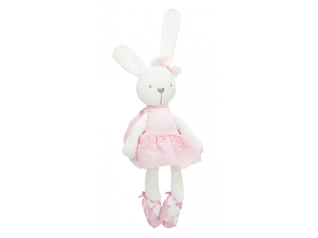 Aranyos plüssnyuszi cuki ruciban. A minőségi kivitelezés és a biztonságos anyagok születéstől fogva alkalmasak a gyermekek számára. A gyerekek megtanulják az empátiát és a mások iránti aggodalmat. A nyuszi tehát megfelelő első játék és jó alvó barát az idősebb gyermekek számára.