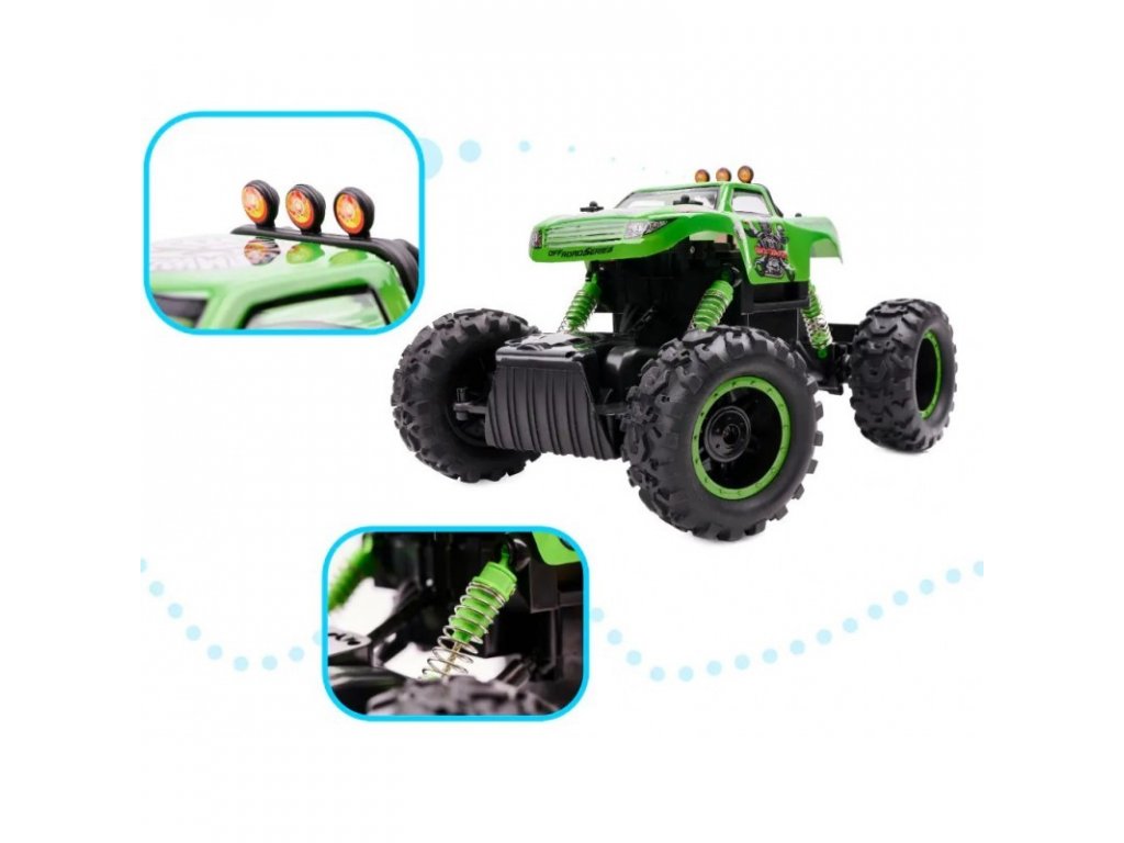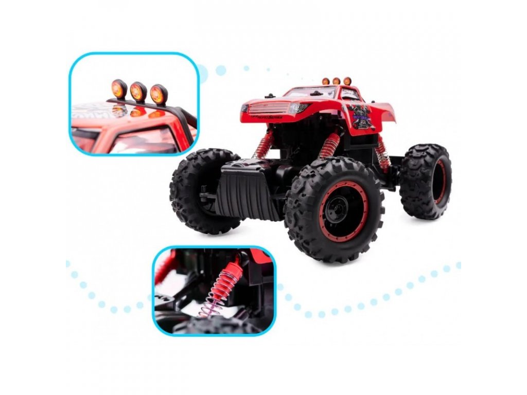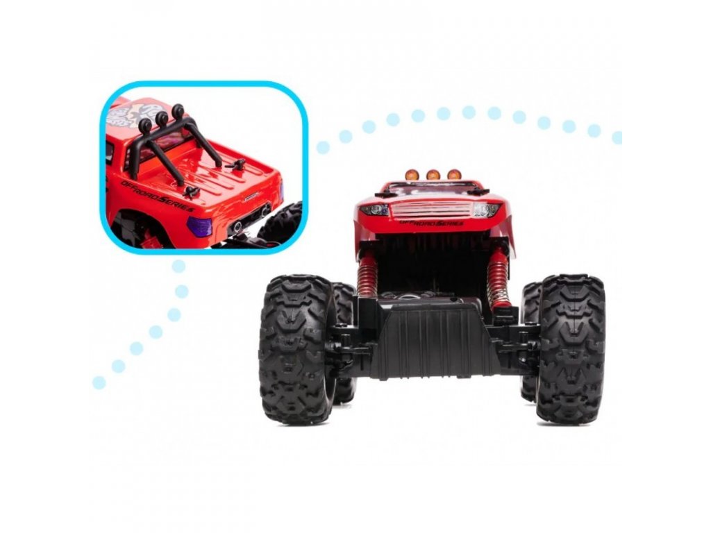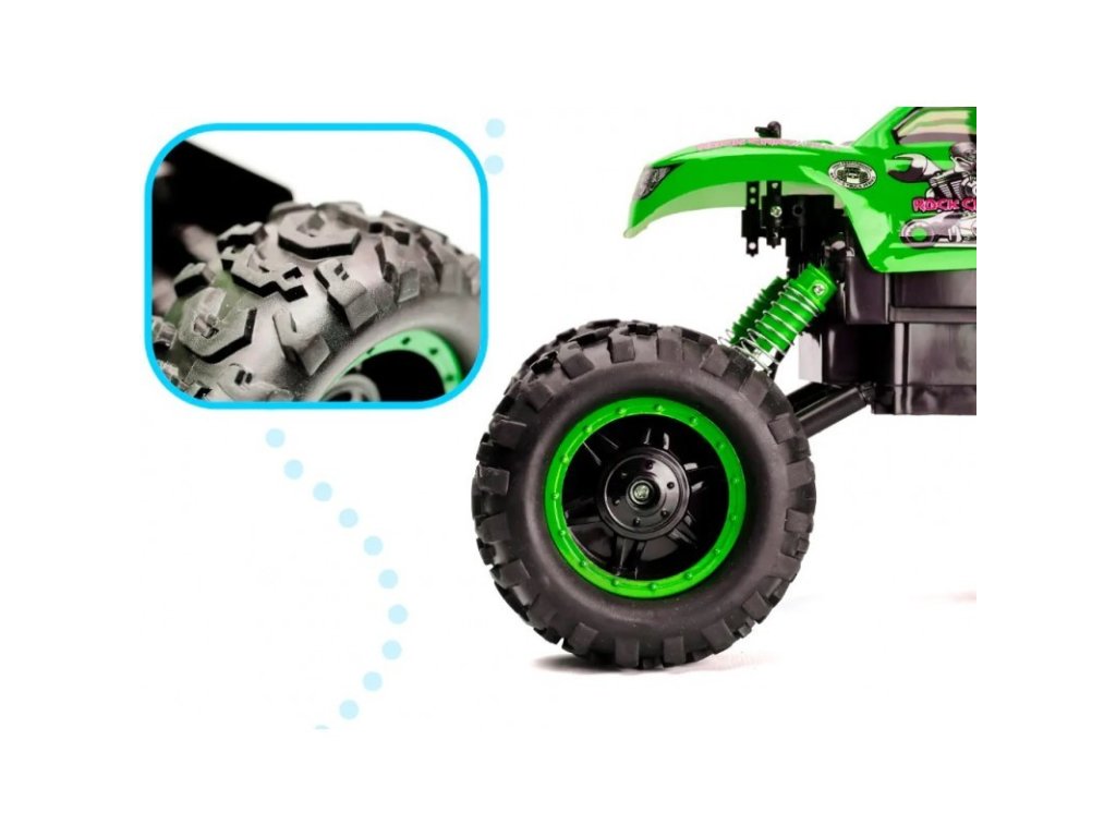 Ez nem egy közönséges távirányítós autó, ez egy igazi vadállat, két független motorral és 4×4 hajtással. A Rock Crawler szinte minden utat képes legyőzni. A nagy, megerősített kerekek magasra emelhetők. Ezenkívül minden kerék rendelkezik lengéscsillapítóval, amely tökéletesen legyőzi a kátyúkat.