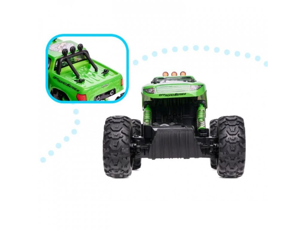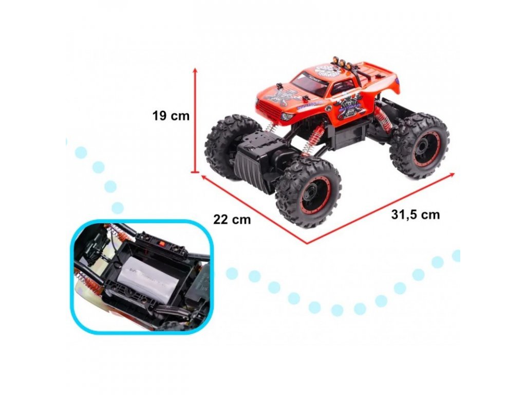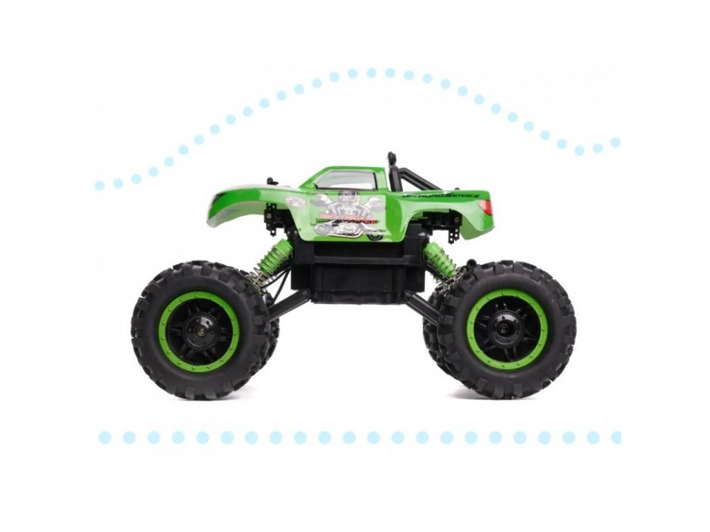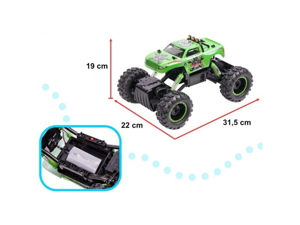 Ez nem egy közönséges távirányítós autó, ez egy igazi vadállat, két független motorral és 4×4 hajtással. A Rock Crawler szinte minden utat képes legyőzni. A nagy, megerősített kerekek magasra emelhetők. Ezenkívül minden kerék rendelkezik lengéscsillapítóval, amely tökéletesen legyőzi a kátyúkat.