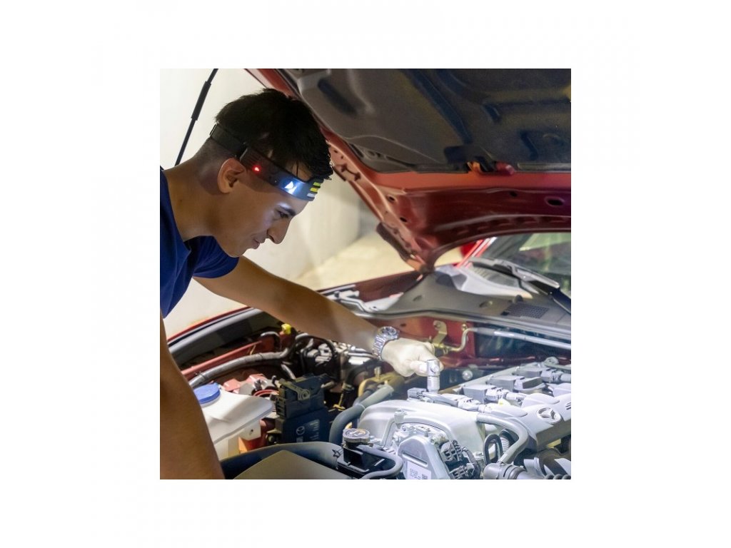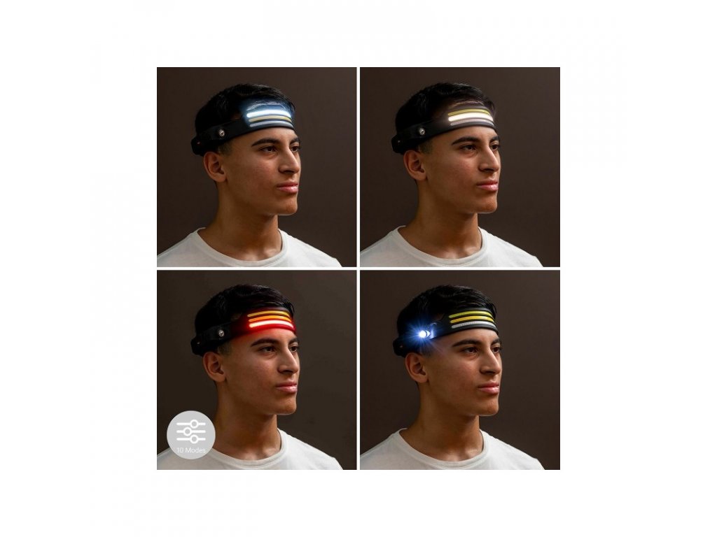 Ez az újratölthető és állítható fejlámpa hármas LED szalaggal (3x30 SMD LED), induktív be/ki érzékelővel és mini oldalsó zseblámpával rendelkezik. Lehetővé teszi akár 10 világítási mód és különböző intenzitási fokozatok kiválasztását. USB-C töltőkábelt tartalmaz. Többcélú LED-es fejlámpa többféle fénnyel: hideg, meleg, piros, villogó. Erőteljes világítása ideális kempingezéshez, horgászathoz, futáshoz, barkácsoláshoz, vészhelyzethez stb.