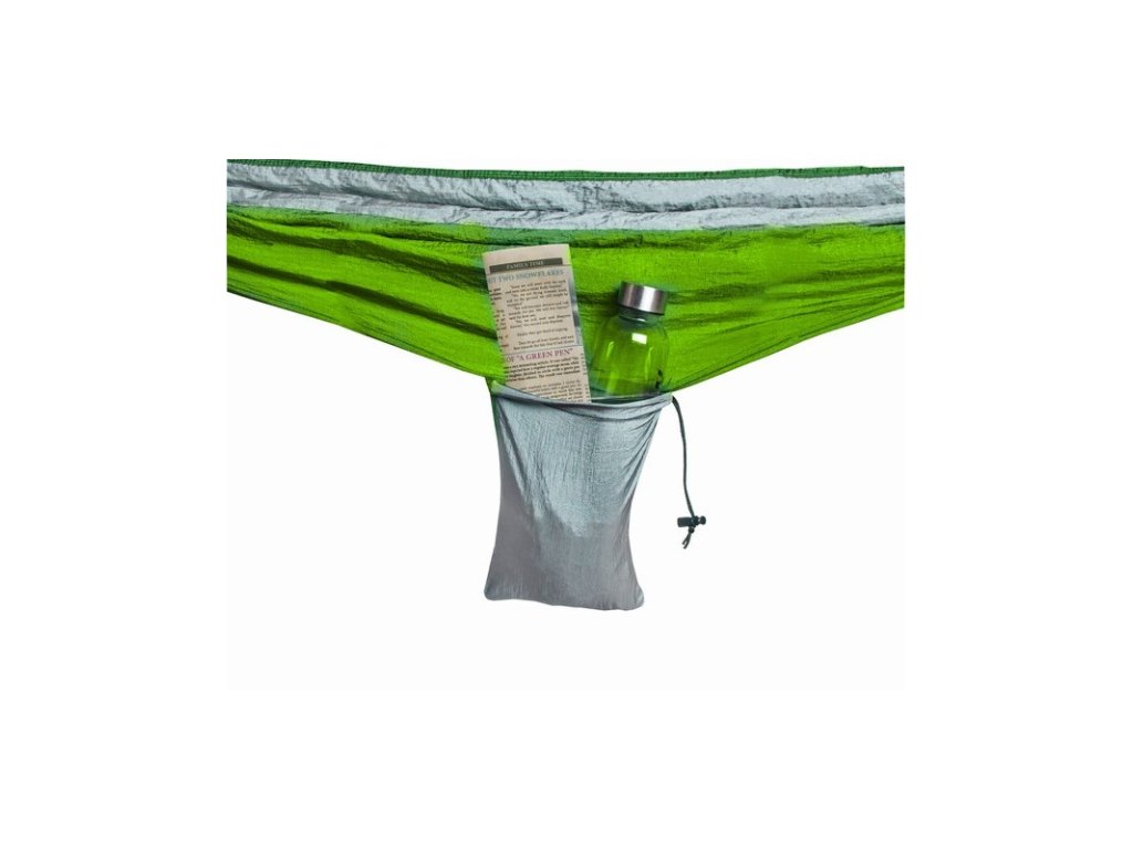 Ez a praktikus, ultrakönnyű függőágy ideális kempingezéshez és túrázáshoz. Lehetővé teszi, hogy pihenjen a friss levegőn. Ez egy rendkívül strapabíró és megbízható konstrukció, amely biztosítja Önnek a jó éjszakai alvást és a pihenést egy hosszú túra után. A kompakt méreteknek és a készlet részét képező csomagolásnak köszönhetően a függőágyat bárhová magával viheti. Összecsukva a termék kis helyet foglal, és egy kis hátizsákban is elfér. Ezen kívül kibontás után a huzat italtáskának, telefon vagy újság tárolására is használható. Annak érdekében, hogy a legigényesebb körülmények között is biztosítsa a kényelmet, a függőágy a legjobb minőségű anyagokból készül. A kényelmes ülés rendkívül erős és rugalmas - akár 150 kg-ot is elbír. Ez az anyag lehetővé teszi a levegő keringését, ami nagyon fontos a forró nyári napokon. Ezzel az egyedülálló függőággyal minden utazás vagy kempingezés sikeres lesz.