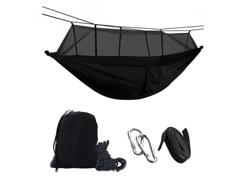 Könnyű, turista nylon függőágy, méretei 260 cm x 140 cm. Nagyon kényelmes, funkcionális és minden kertben, erdőben vagy úton hasznos. Tökéletes pihenést biztosít fáradt testének és további védelmet nyújt a rovarok ellen.