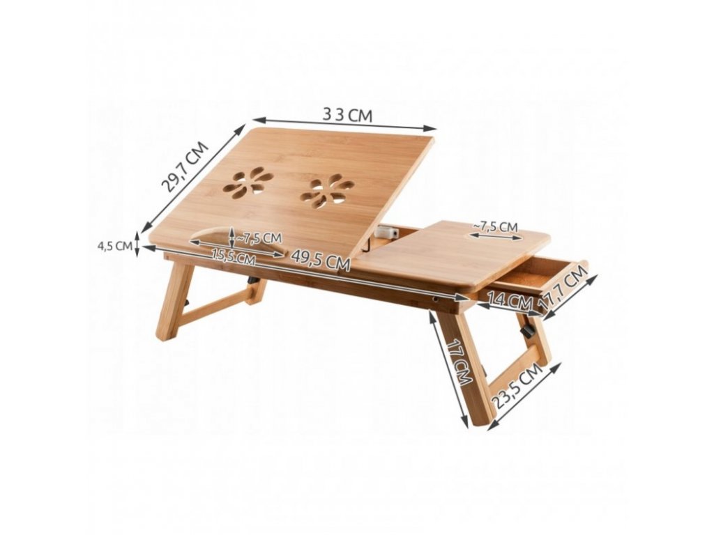 A laptopasztal mindenki számára nélkülözhetetlen kütyü. Ennek köszönhetően könnyedén kialakíthat munkahelyet saját ágyában, karosszékében vagy akár műhelyében. A termék szellőzésének köszönhetően elfelejti a túlmelegedést és a kényelmetlenséget. Alkalmas újság-, könyvolvasási asztalnak vagy akár reggeli állványnak is az ágyban.