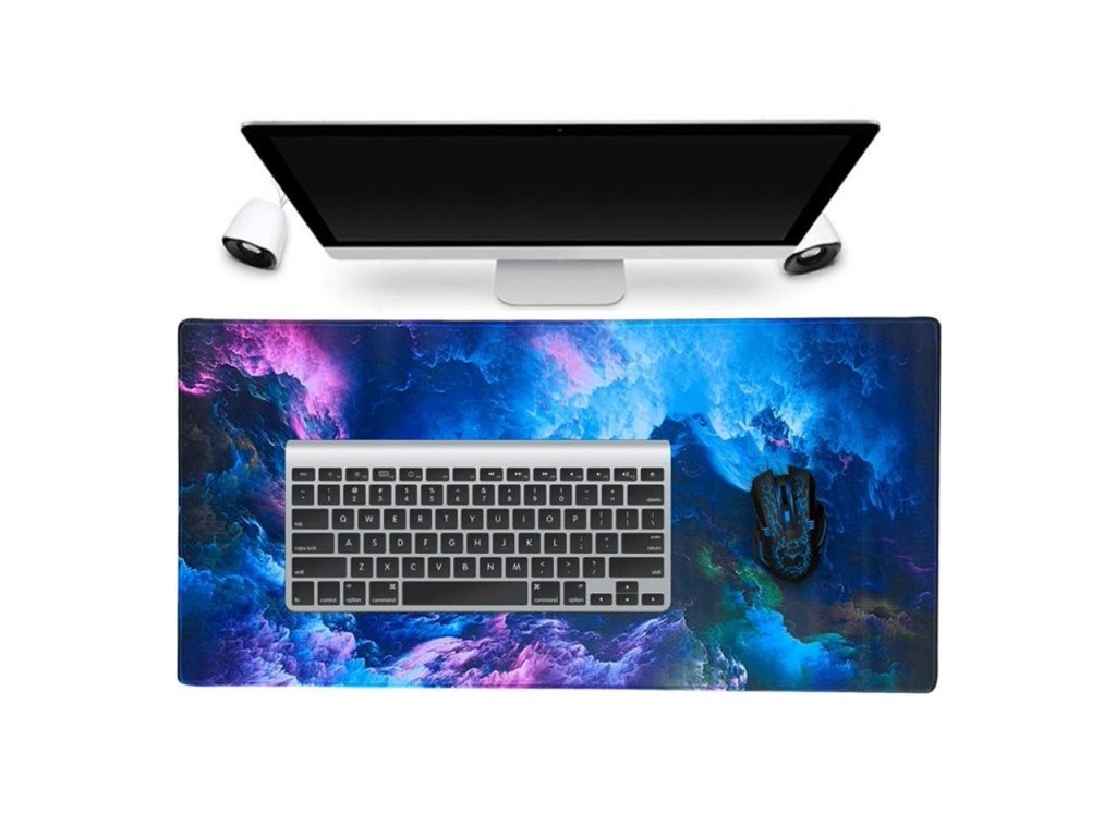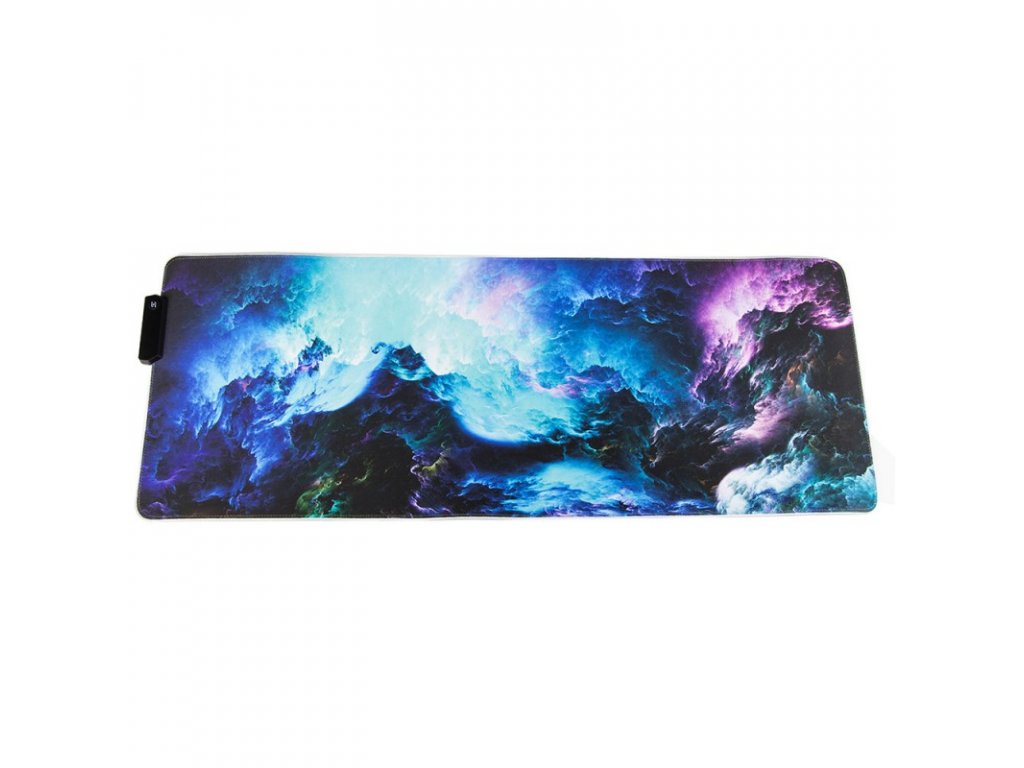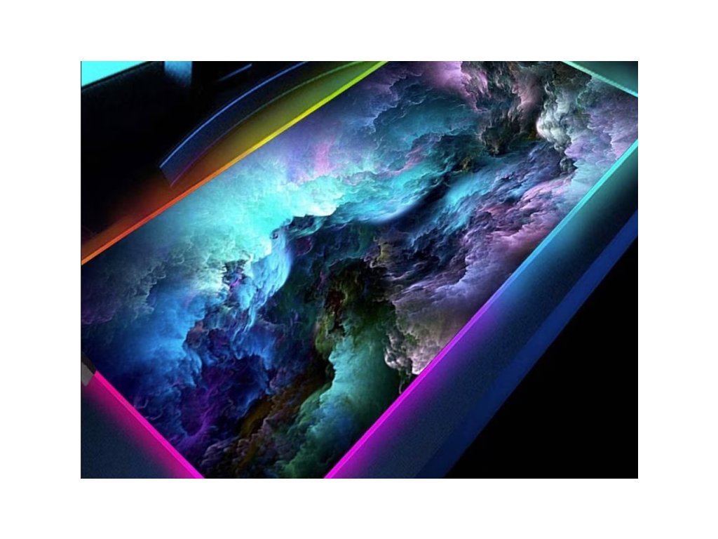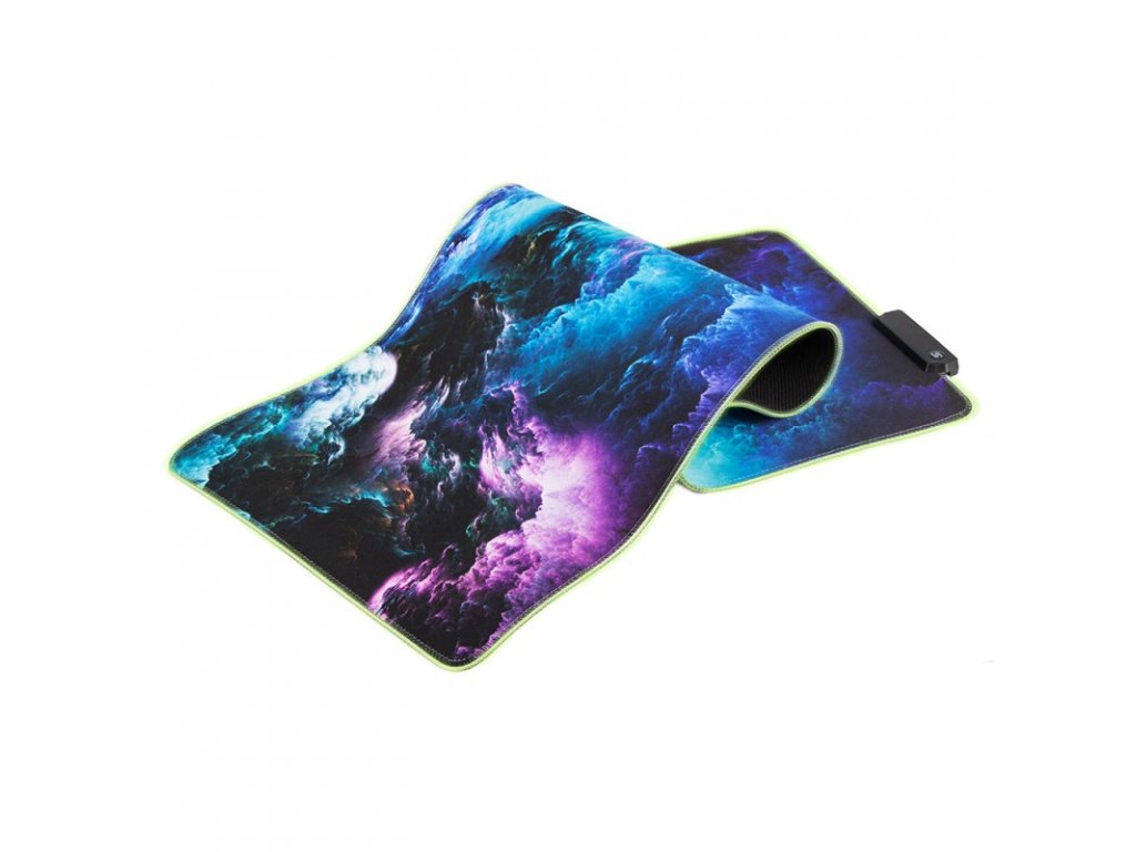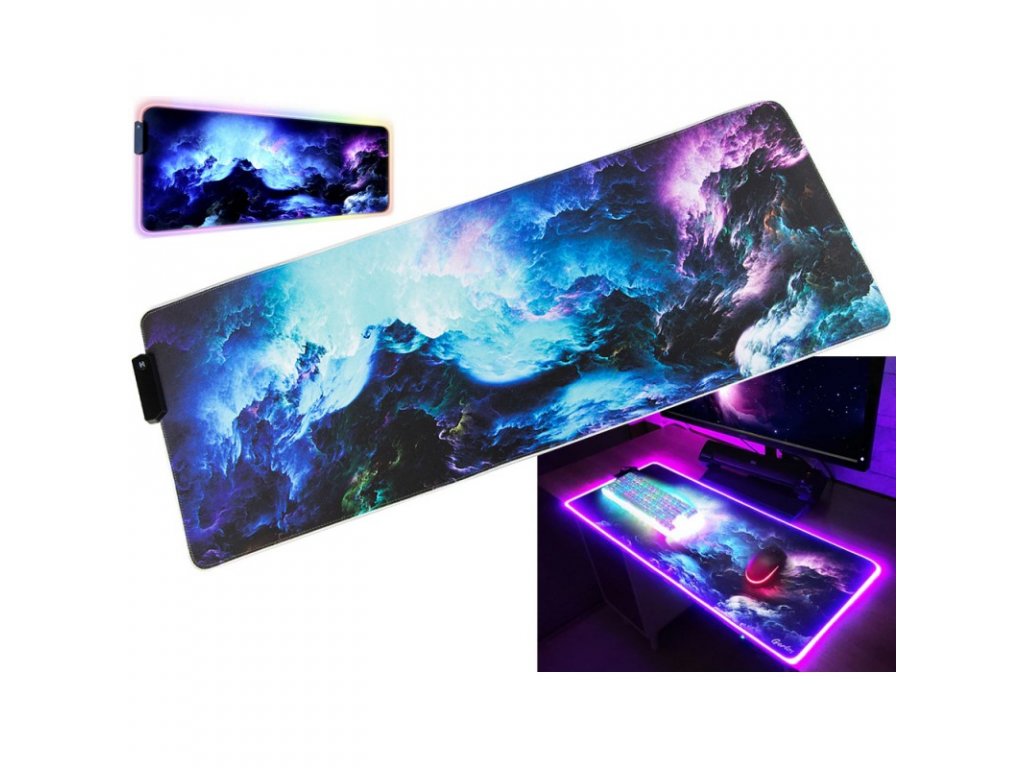 A nagy asztalszőnyeg tökéletesen védi az asztal felületét és növeli a munka kényelmét. A betét olyan anyagból készült, amely nem befolyásolja az optikai egerek pontosságát. A kiváló minőségű gumi és a tartós szintetikus anyag garantálja a tartósságot és a vízállóságot. A szőnyeg alsó részén található speciális bevonat megakadályozza, hogy elcsússzon a munkalapon. A betét puha rétege kényelmet nyújt a kezének. Az esztétikus nyomat divatos viharfelhők formájában tökéletesen illeszkedik a legtöbb enteriőrbe. A szőnyeg tökéletesen illeszkedik gyermekszobájába. A tápellátást USB-port biztosítja, és egy kis gombbal szabályozhatjuk a háttérvilágítási módokat.