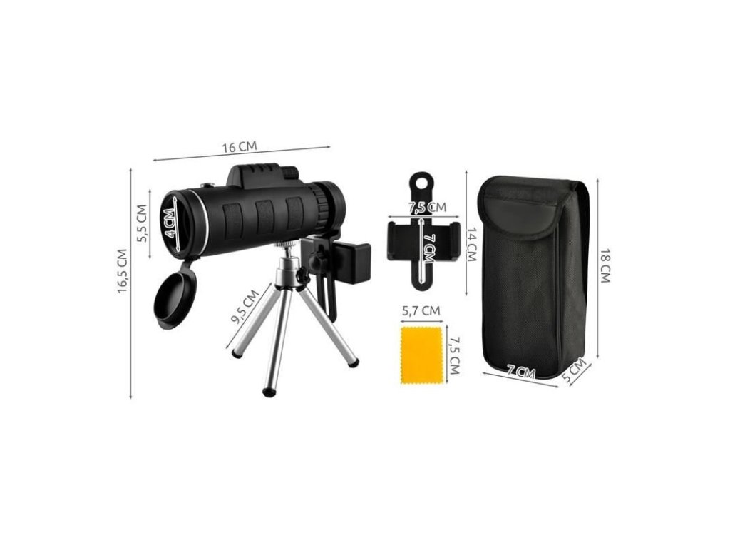 TELEFONTARTÓ - a telefon gyors távcsőre való rögzítésének lehetősége azt jelenti, hogy bármikor tudunk kamerát venni, vagy akár 9500m-ig fotózni jó levegőátlátszóság mellett az éles kép megőrzése mellett. A telefonban a zoom használatával nem tudunk ekkora távolságot elérni. A termék bármely, legfeljebb 90 mm széles telefonmodellel kompatibilis. Az objektív minden fotózás szerelmese számára ideális lesz – méltó helyettesítője lesz a fényképezőgépnek.