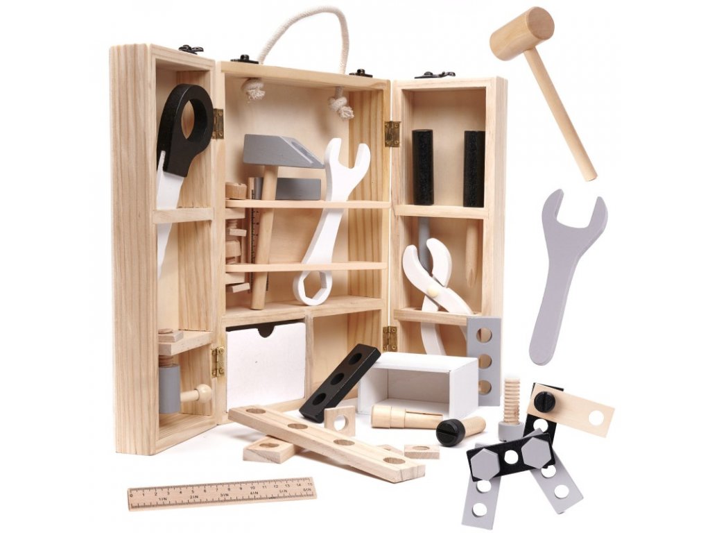 Egy tokban lévő fából készült szerszámkészlet biztosan minden gyermeknek tetszeni fog. Ezzel az eszközzel minden otthoni meghibásodás pillanatok alatt megszűnik. A készlet nagyon hatékonyan készült, és minden kis háztartási segédnek tetszeni fog. Minden kisfiú segíteni akar apjának vagy nagyapjának. Csavarhúzók, kalapácsok, csavarok és kulcsok szükségesek a műhelyben. A csavarozás, szögezés vagy fűrészelés nagyszerű módja a kézi készségek gyakorlásának gyermekében.