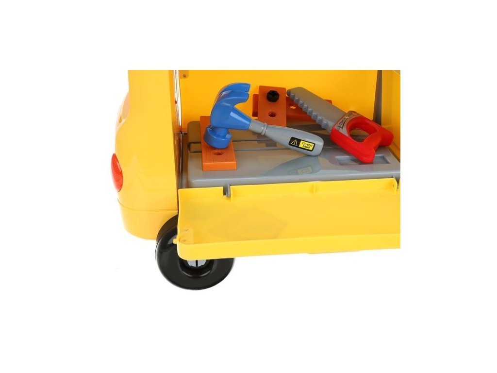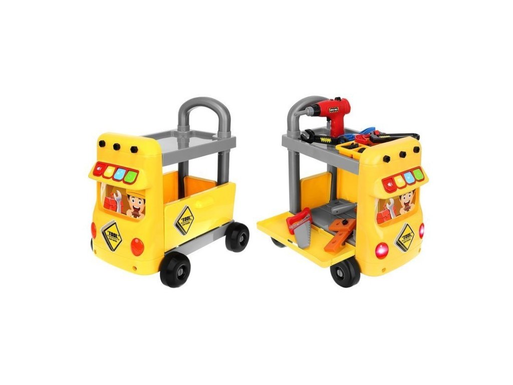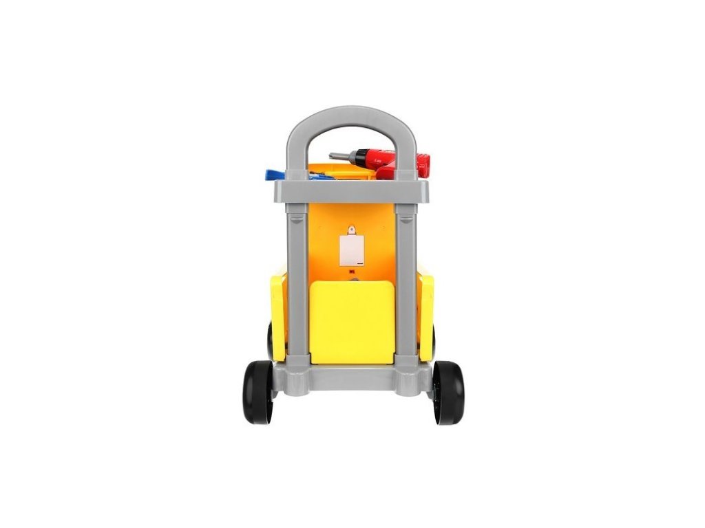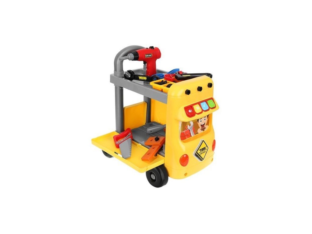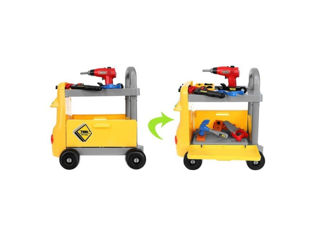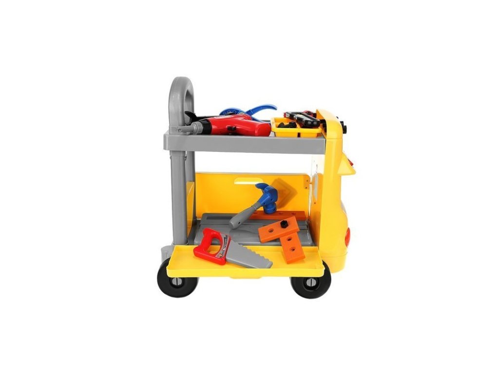 Ideális ajándék gyerekeknek, nem csak barkácsolóknak, hanem azoknak a gyerekeknek is, akiknek még nem volt lehetőségük megtudni, hogy mennyi csavart, anyát és kulcsot és egyéb javításokhoz, felújításokhoz használt szerszámokat használtak. A kocsiban sok szerszám és kiegészítő található a készletben. A kis szerelő tud majd csavarozni, hajtogatni, fűrészelni és fúrni. Könnyen elsajátítja a különböző típusú anyagokkal és alkatrészekkel való munka alapelveit, és tisztában lesz azzal is, hogy óvatosnak kell lenni a mechanikus szerszámok használatakor. A készlet tartalmaz még egy mozgatható kézi fúrót, egy állítható csavarkulcsot és sok egyéb meglepetést.