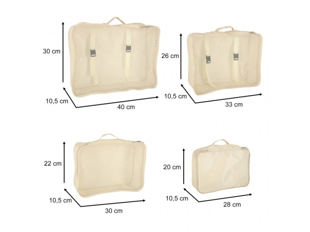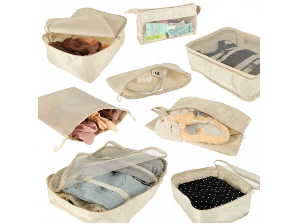 A praktikus rendezőkészlet segítségével könnyebben tarthatja a rendet és az áttekintést a csomagolt poggyászában. Nekik köszönhetően az utazáshoz való pakolás sokkal gyorsabb és hatékonyabb lesz. A csomagok rendszerezését is megkönnyítik. A szervezők nem csak utazáskor, hanem otthon is hasznosak a dolgok tárolására. Minden szervezőnek más a mérete, ami lehetővé teszi, hogy az Ön igényeihez igazítsa őket. Az utazásszervezők vízálló anyagból készülnek, amely védi a becsomagolt tárgyakat.
