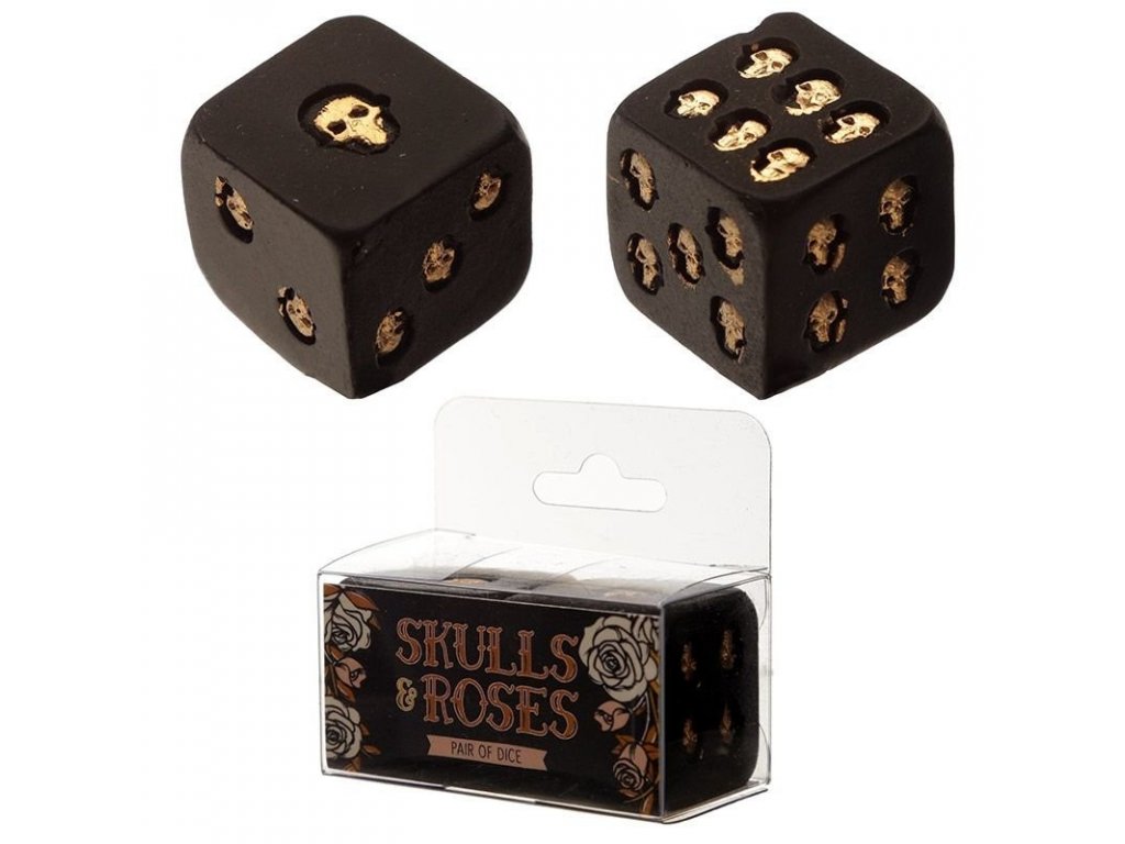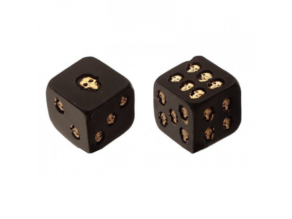 Két fekete gyanta kockából álló készlet arany koponyákkal. A szórakozás új dimenziója.