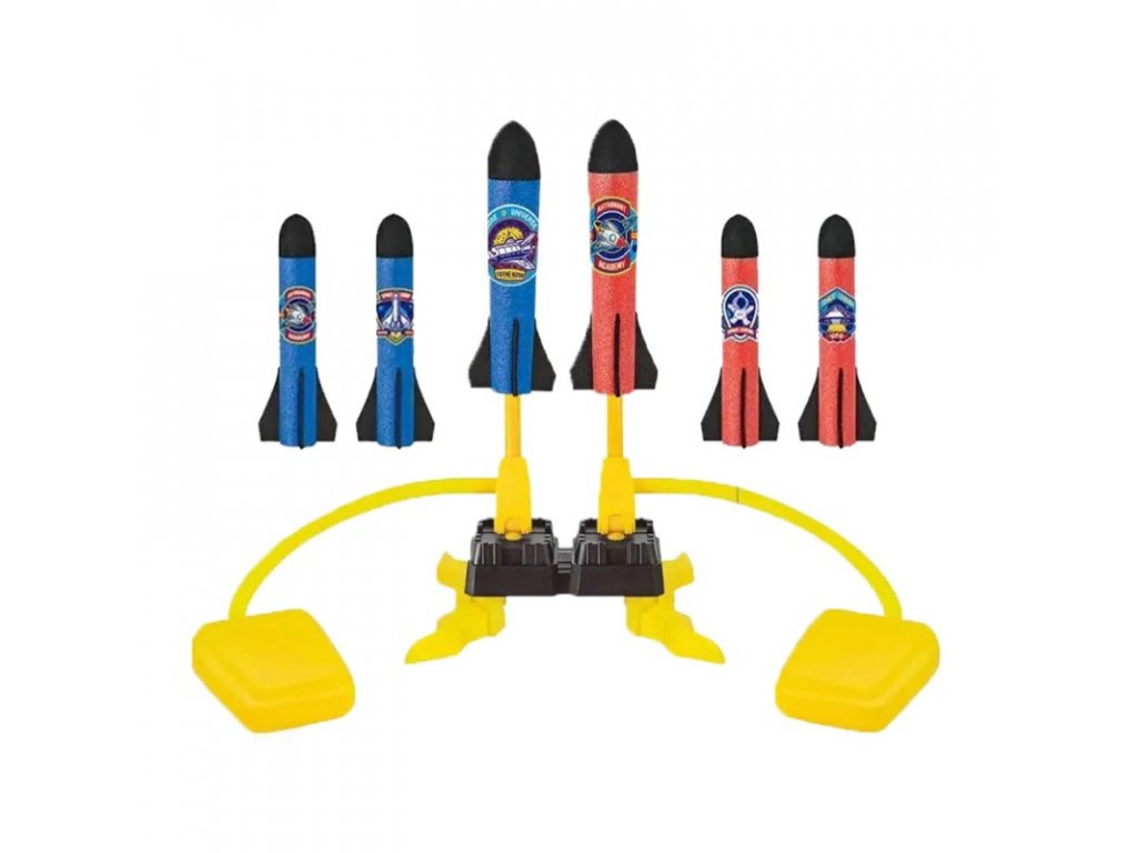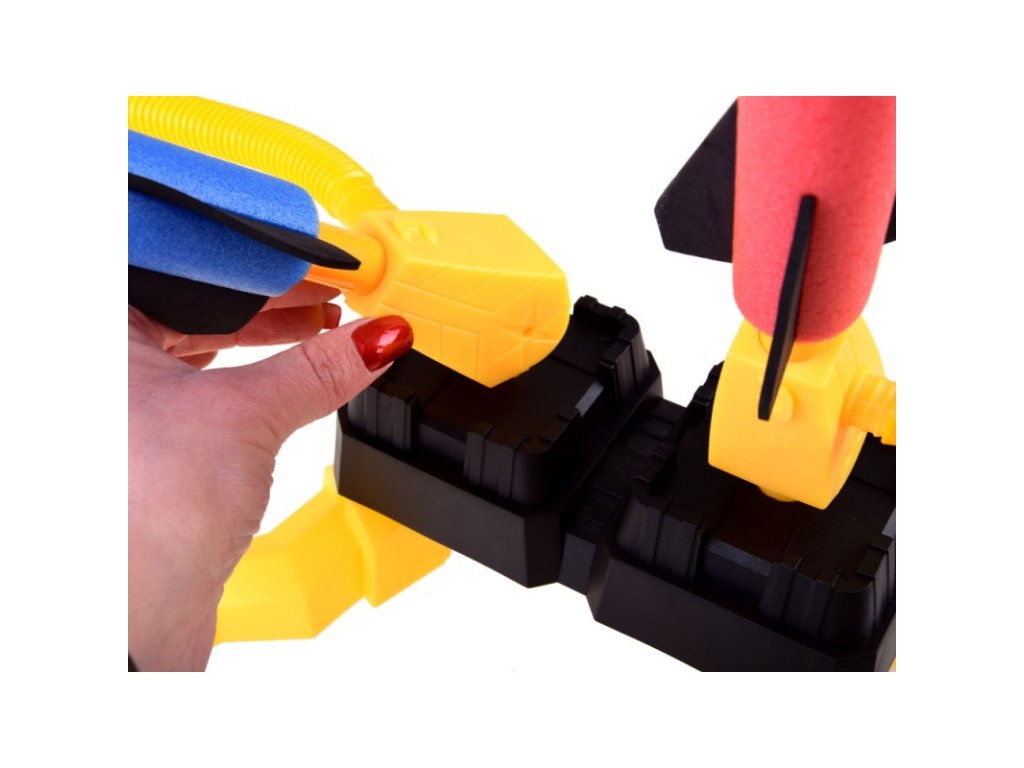 A nagy katapult rakétavető nagyszerű eszköz minden repülő rajongó számára. A remek szabadtéri szórakozás garantált, nem csak a gyerekeket, hanem a felnőtteket is magával ragadja. Az indítószerkezet teljes egészében műanyagból készült, a habszivacs rakéták pedig puhák, így nem tesznek tönkre semmilyen tárgyat és nem bántanak senkit a magasból való leesés után. Az indítómechanizmus kezelése nagyon egyszerű, a legkisebbek is könnyedén kezelhetik – elég rálépni a rugalmas légtartályra a rakéta kilövéséhez. Remek ötlet a szabadidő eltöltésére a szabadban családjával és barátaival. Indítsa el a rakétát, amennyire csak lehetséges, és próbálja meg elkapni, amikor visszatér a földre. Ezek a rendkívül könnyű rakéták nagyon magasra tudnak repülni. A mozgatható ágyúknak köszönhetően állítható a rakétakilövés iránya és magassága.