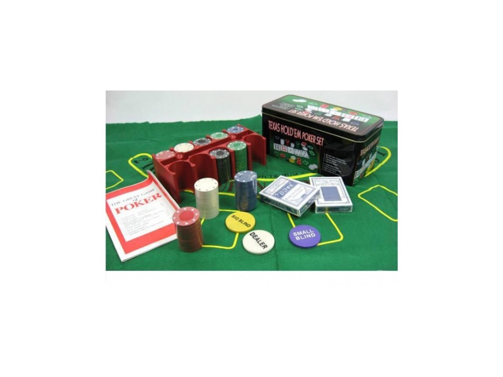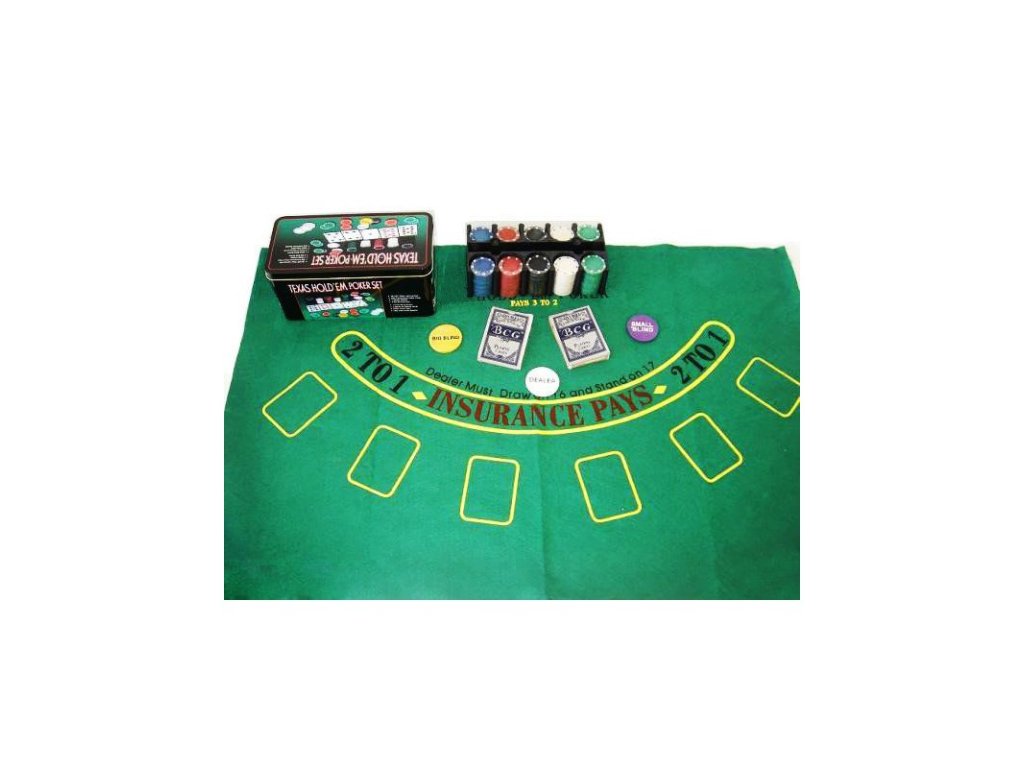 Texas Hold'em póker és egyéb kártyajátékok teljes készlete. 2 pakli kártya, 200 zseton jelölésekkel, gomb dealer, small blind, big blind, összecsukható pókerszőnyeg – minden, ami ahhoz kell, hogy úgy érezd magad, mintha egy igazi kaszinóban lennél.