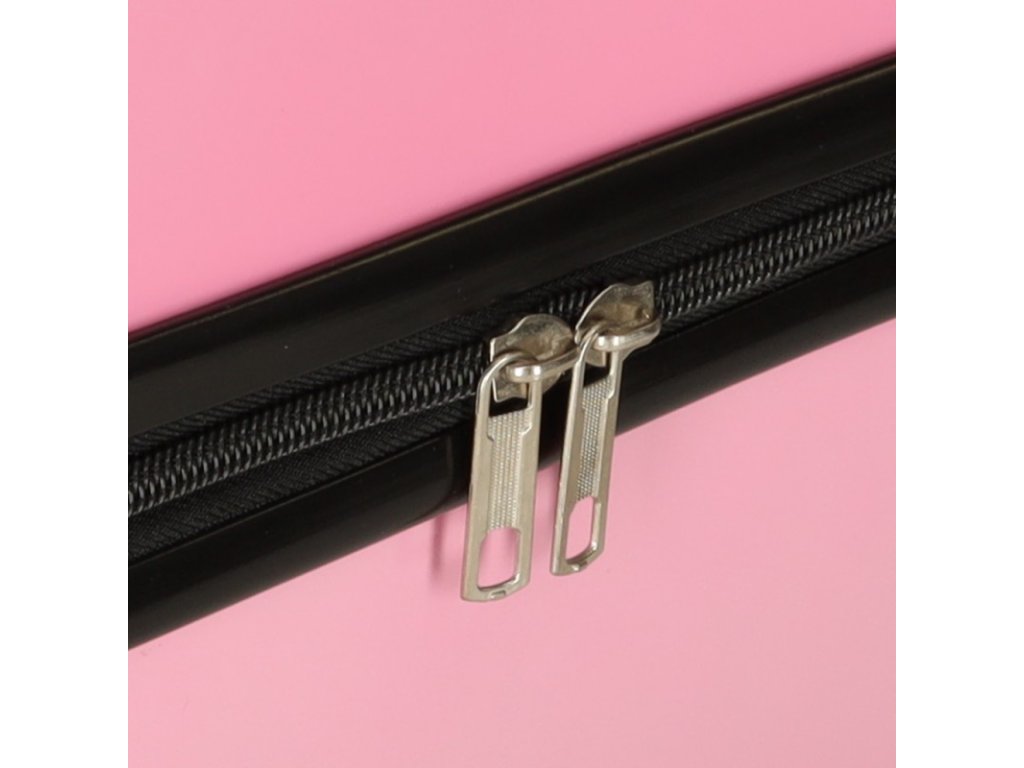 A rózsaszín gyerek bőrönd macskagrafikával tökéletes kiegészítője a kis felfedezőnek. A maximális utazási kényelem érdekében a bőrönd kihúzható fogantyúval és négy 360 fokban forgó kerékkel van felszerelve a könnyű húzáshoz. A bőröndbe minden gyerek utazási tárgy belefér – a belseje kétkamrás és bélelt. A kétoldalas cipzár gondoskodik a becsomagolt tárgyak biztonságáról. Kompakt méreteinek köszönhetően a bőrönd ideális kézipoggyásznak.