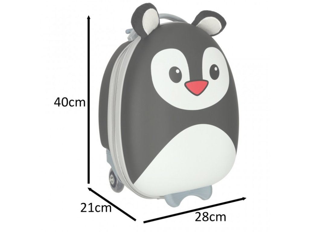 Készítse fel gyermekeit az utazási kalandokra imádnivaló gyermek utazóbőröndünkkel - Pingvin. Ez a stílusos és praktikus bőrönd tökéletes társ minden családi nyaraláshoz, iskolai kiránduláshoz vagy a nagymamánál való éjszakázáshoz. Vidám kialakításának és rendkívül funkcionális jellemzőinek köszönhetően minden gyermek kedvenc utazási kelléke lesz. A teleszkópos fogantyú és a két kerék megkönnyíti a mozgatást. Ezenkívül fogantyúval van felszerelve, amely lehetővé teszi a bőrönd kézben tartását. Belsejében biztonsági pántok és cipzáras zseb található. Az állat érdekes kialakítása minden gyermeknek tetszeni fog.