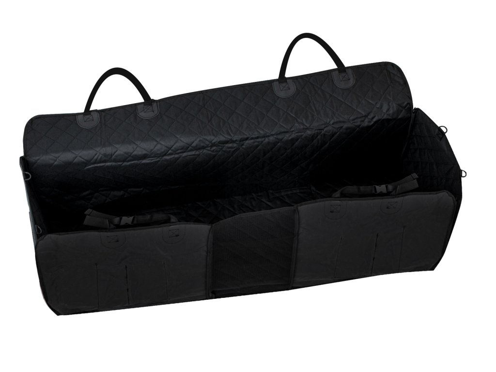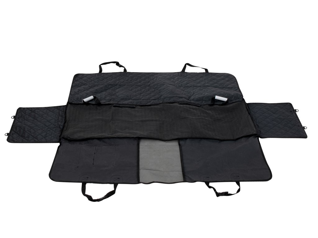 A nagy steppelt szőnyeg tökéletes azoknak az állatok szerelmeseinek, akik szeretik kedvenceiket kirándulásokra és nyaralásokra vinni. A járóka formájú univerzális autószőnyeg különösen hasznos lesz kutyával való utazáskor. A sáros mancsok vagy a nedves szőrzet többé nem jelent problémát. Az alátét pántokkal van felszerelve, amelyek lehetővé teszik, hogy oldalról "bezárd", és biztonságos járókává változtasd. Ennek köszönhetően biztos lehet benne, hogy kedvence az ajtó kinyitása után nem ugrik az utcára. A burkolat megvédi a kárpitot a szennyeződéstől, és növeli a vezető és az állat biztonságát vezetés közben. A kutyája többé nem fog lecsúszni az ülésekről, és nem sikerül előre másznia. A párna lyukakkal is fel van szerelve, amelyeken keresztül behelyezheti a biztonsági öv rögzítőit. Az elülső részben, az ülések között egy háló van felszerelve, melynek köszönhetően az állat láthatja gazdáját és nézheti az utat. A járókát állítható hevederekkel rögzítheti az első és a hátsó ülések fejtámlájához. A csomagtartó burkolataként is szolgál majd. A burkolat szélén fémgyűrűk is találhatók. Kiegészítő hevederek is járnak hozzá, amelyek segítségével még jobban rögzítheti a szerkezetet az ajtó feletti kilincsekre rögzítve. Alul, az ülés melletti részen a szőnyeg csúszásgátló anyaggal van bevonva. A modern, elegáns dizájn a legigényesebb állattartóknak is tetszeni fog. Kedvence stílusosan fog utazni! Ezen kívül a szőnyegen két praktikus zseb található, amelyekben pórázt vagy finomságokat rejthet kedvence számára. Ideális kis, közepes és nagy kutyák számára. Még két közepes méretű kisállat is jól érzi magát benne! A betét vízálló és szennyeződésálló anyagból készült. Tisztítása is egyszerű – csak nedves ruhával törölje le.