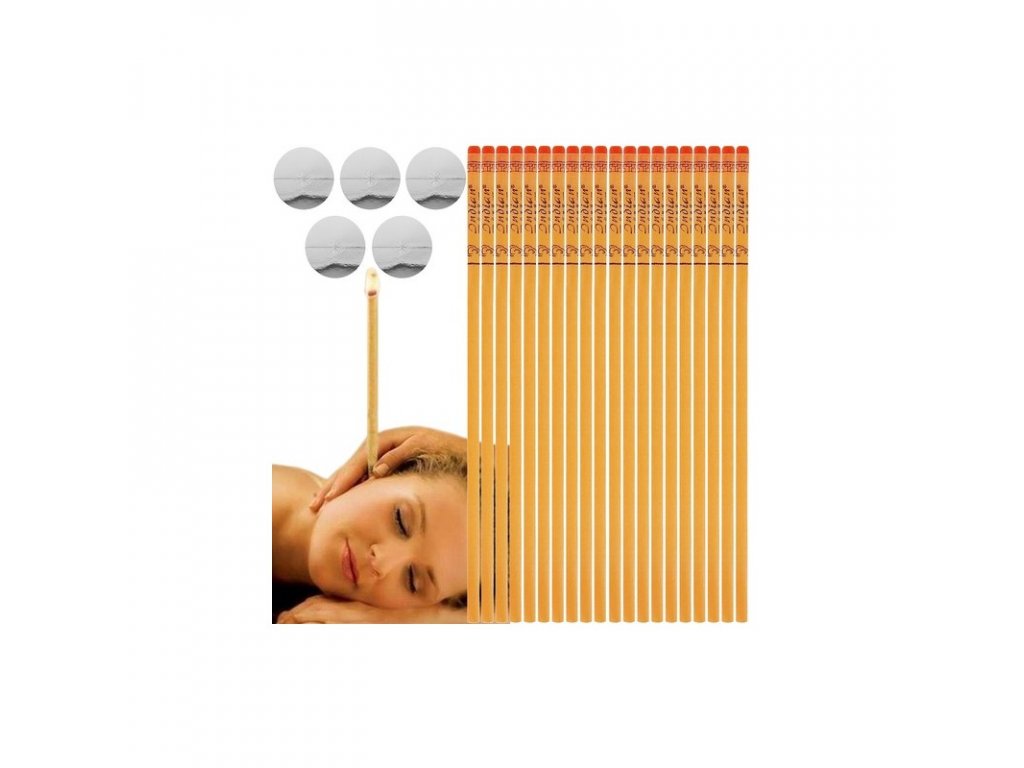 A készlet egy 20 db-os gyertyát tartalmaz szűrővel, amely hatékonyan védi a fület a gyertyaégetés nem kívánt hatásaitól. A szűrő megakadályozza, hogy viasz kerüljön a fülbe. A gyertyákkal végzett kezelés lehetővé teszi az egész test teljes ellazulását. A gyertyák relaxáló és aromaterápiás hatásúak. A gyertyák 100%-ban természetes méhviaszból készültek illóolajokkal kombinálva. A készlet tartalmaz egy állványt, amely megakadályozza a viasz leesését, ami megégetheti a fület.