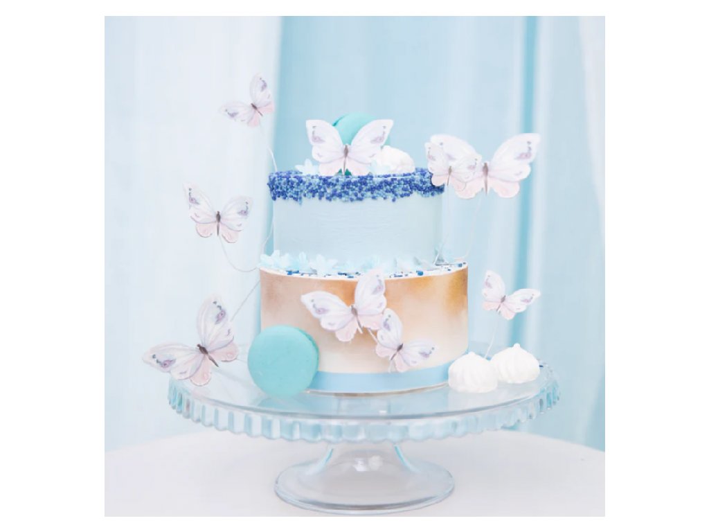 Emelje fel bármely ünnepi torta látványát egy exkluzív felsővel, amely kilenc gyönyörű, különböző méretű pillangót tartalmaz. Ezt az egyedi díszítőelemet pasztell tónusokkal tervezték, túlnyomórészt fehérrel, amely eleganciát és finomságot kölcsönöz. A pillangók szélessége 4,3–8,2 cm, magassága pedig 3–5,5 cm, így kellően jellegzetesek ahhoz, hogy felhívják a figyelmet, de ne rontsanak a torta általános érzetén.