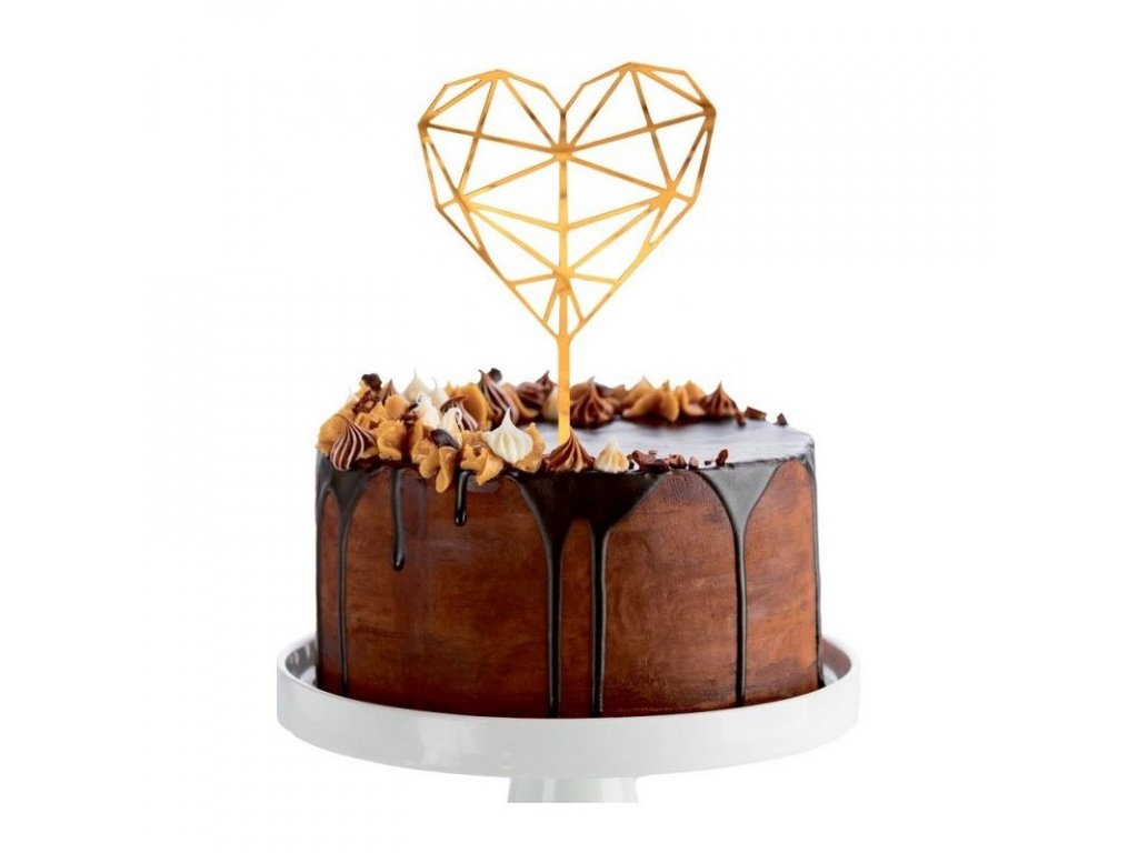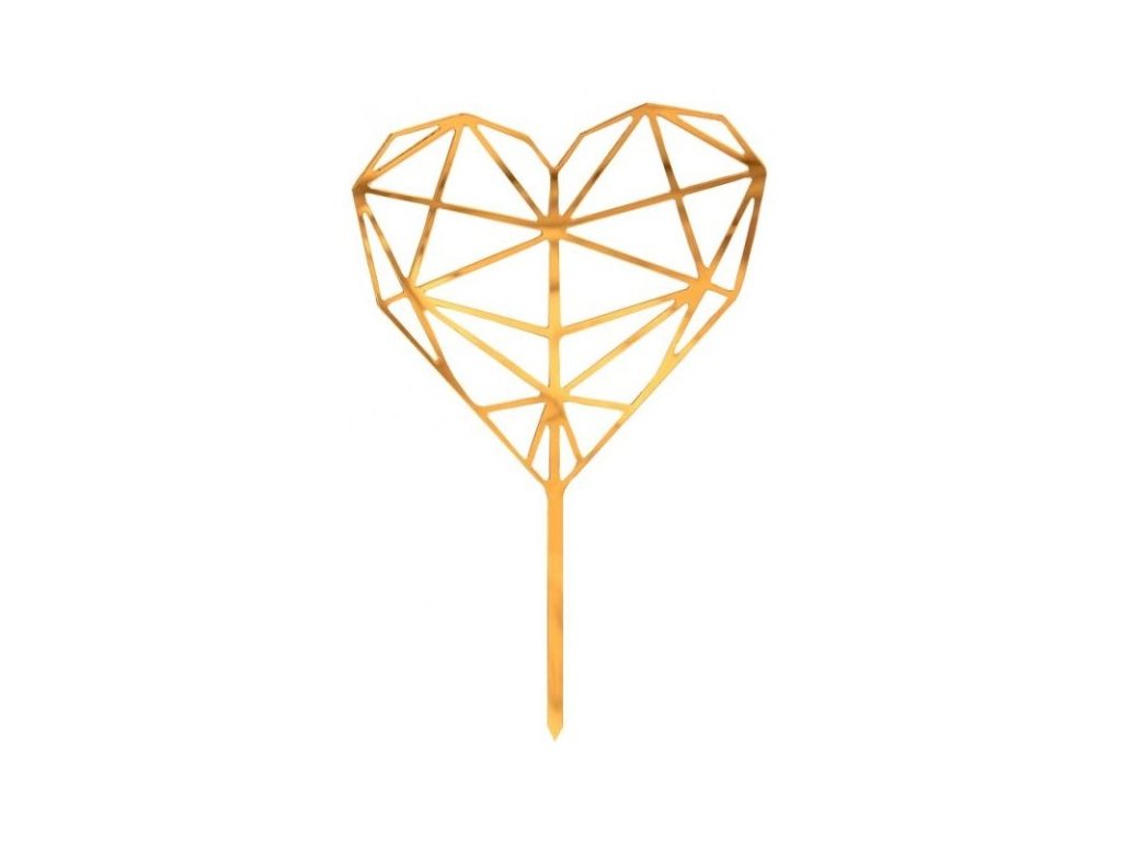 Egy gyönyörű beszúró torta díszítésére, divatos arany színű gyémánt szív formájában, minden elegáns dekoráció szerelmesét vonzza.