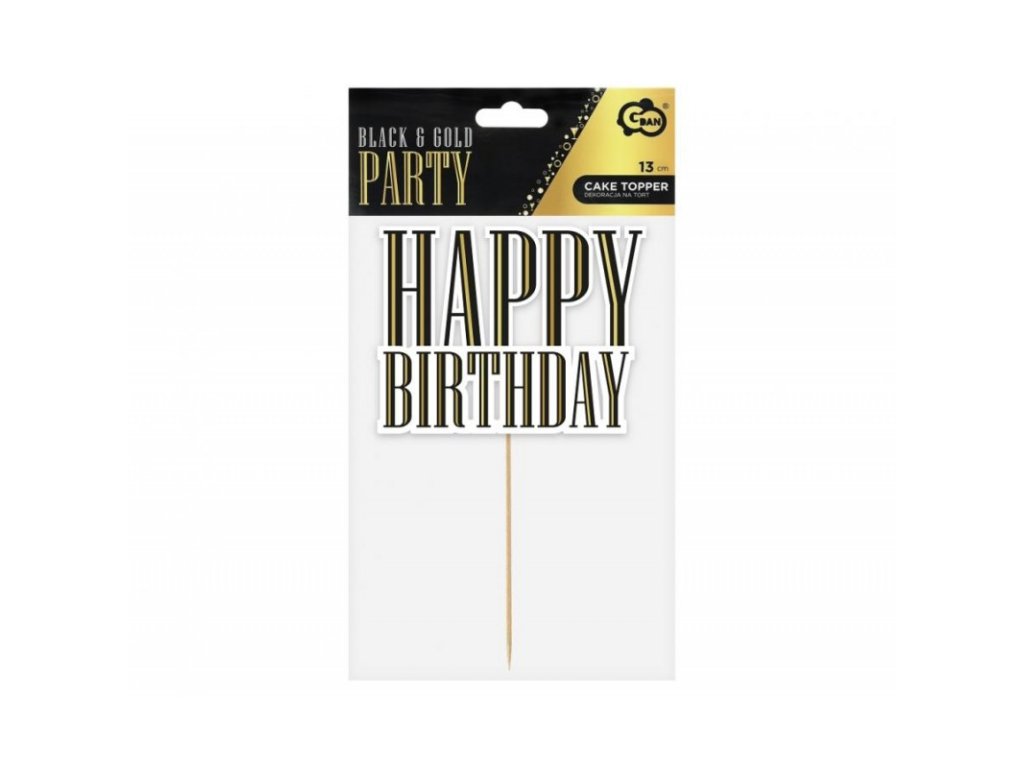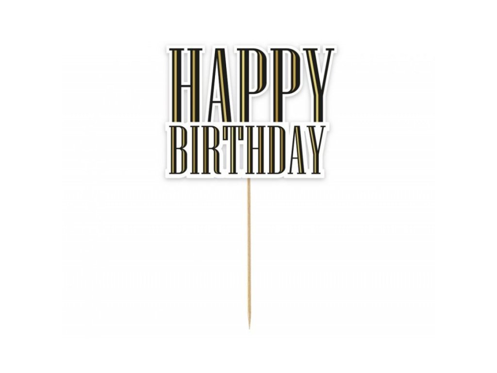 A "Happy Birthday" feliratú, arany-fekete feliratú, divatos torta díszítésére szolgáló beszúró minden elegáns dekoráció szerelmesét vonzza.