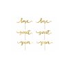 Szereti az egyszerűséget, elegáns dekorációkat, apró részleteket, amelyek kiegészítik az egyes ünnepségek általános hangulatát? Tehát ezek a divatos, arany feliratok formájú beszúrók a muffinok vagy szendvicsek díszítésére az Ön számára készültek. Eredeti dekoráció, amely nem csak a gyerekeket, hanem a felnőtteket is elvarázsolja. Előnye, hogy a dekorációt emlékként is megőrizheti, így valóban hiteles emlékeket őrizhet az albumban. Készítsen egy felejthetetlen ünnepet családja számára, és ne felejtse el az előkészületek során, hogy nemcsak a szájat, hanem mindenekelőtt a szemeket eteti!