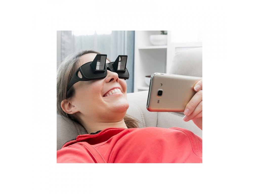 Kényelmes és praktikus eredeti szemüveg, melynek köszönhetően a kanapén vagy az ágyban fekve tévézhet vagy könyvet olvashat anélkül, hogy fel kellene emelnie vagy el kellene fordítania a fejét. Megszabadítják a szem megerőltetésétől, valamint a rossz testtartás okozta hát- és nyakfájdalmaktól. Emellett a kórházakban, klinikákon tartósan beteg embereknek is remek segítséget nyújtanak.